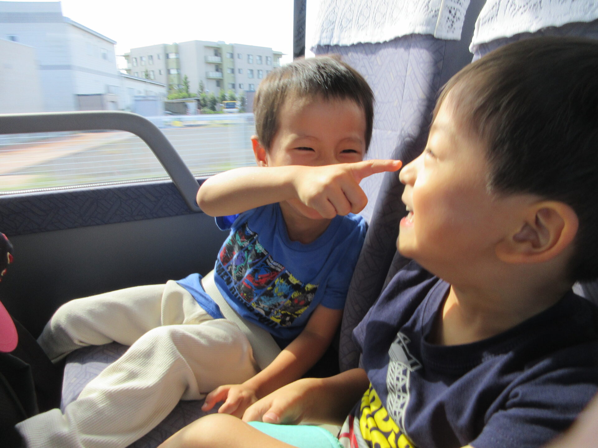 こうして「釣り」や「虫取り」、「木の実探し」等、やりたいことを1日中楽しむことができたそら組のこどもたち。帰りのバスでは、ぐっすり眠って園に戻りました。