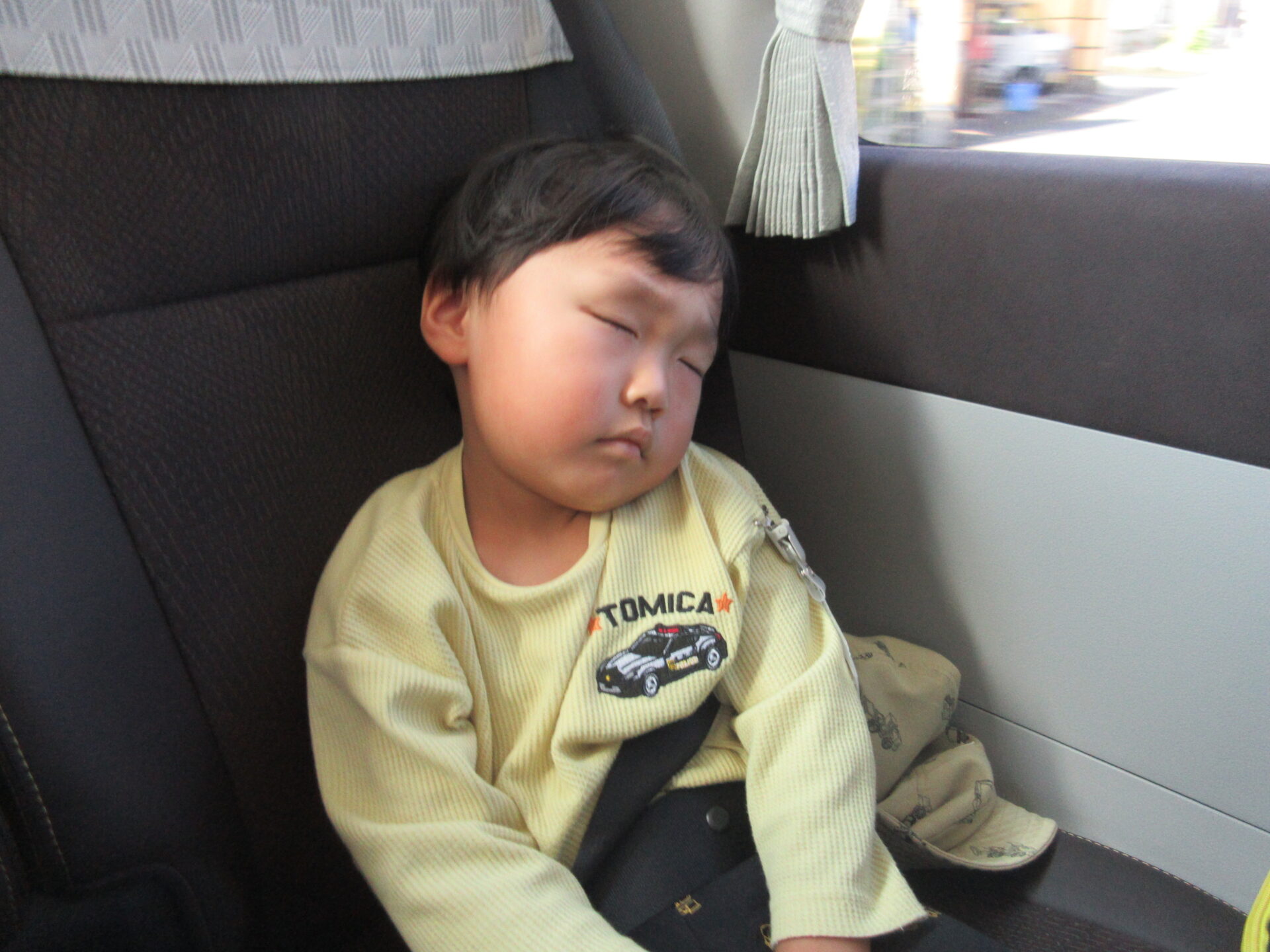 帰りのバスでは、バスが走り出してしばらくすると、こどもたちはぐっすりと眠っていました。