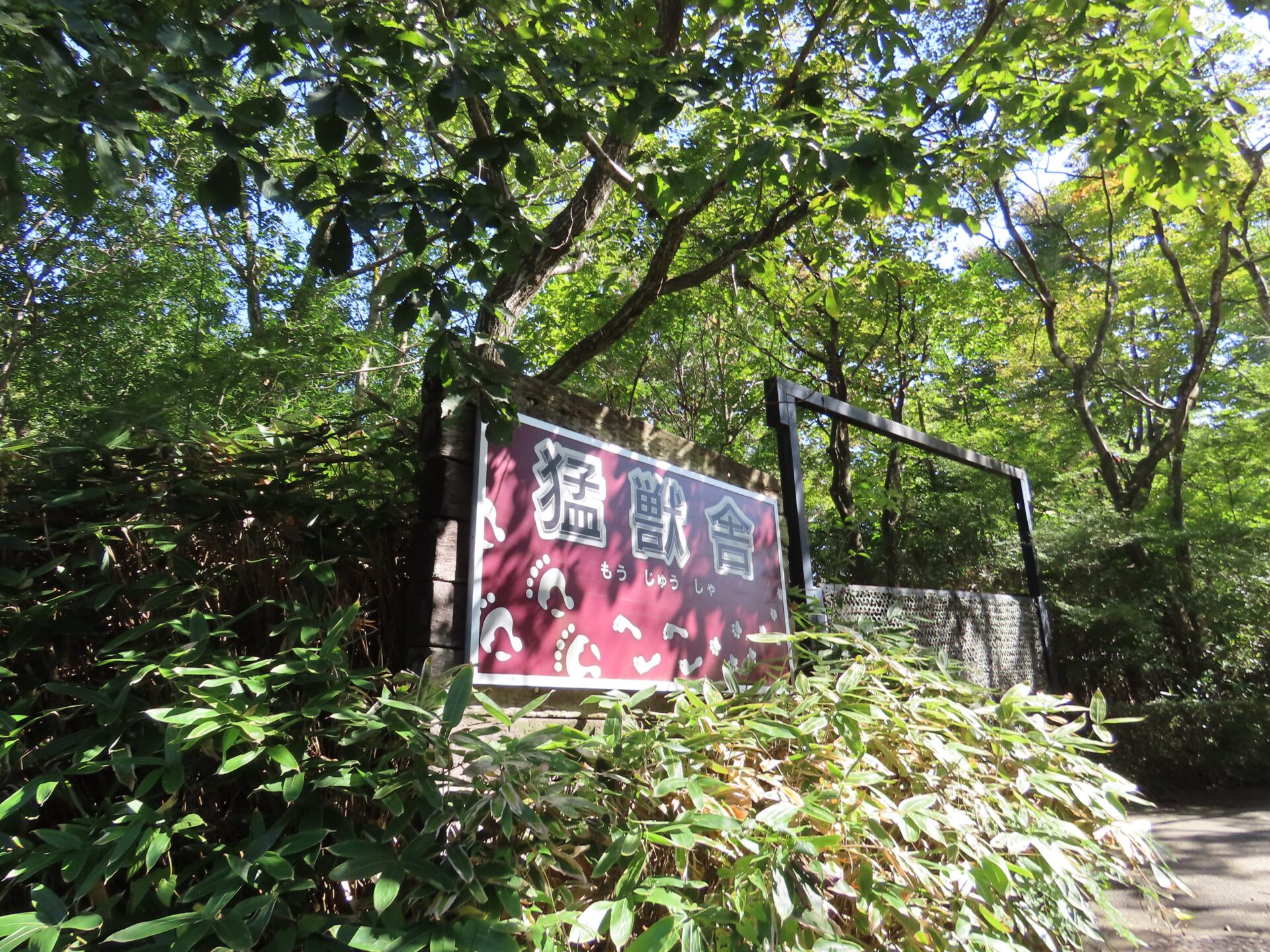 『猛獣舎』を目指していたグループが歩き始めて20分弱…看板が見えてきたと同時に猛獣の唸り声が聞こえてきました。