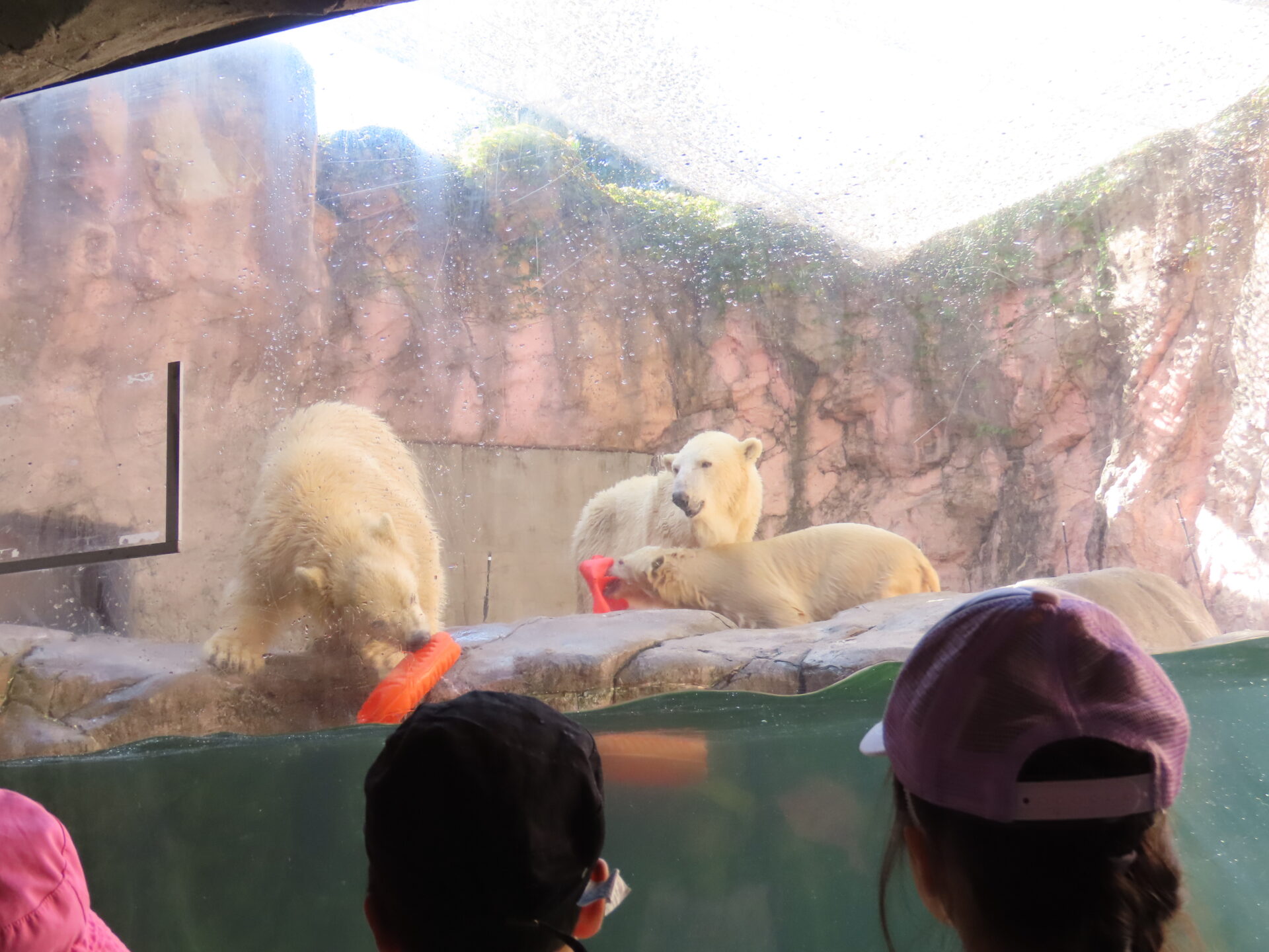 双子のホッキョクグマの元気いっぱいに遊ぶ様子や、水中にダイブする姿を間近で見たこどもたちは驚きからか、静かに見入っていました。