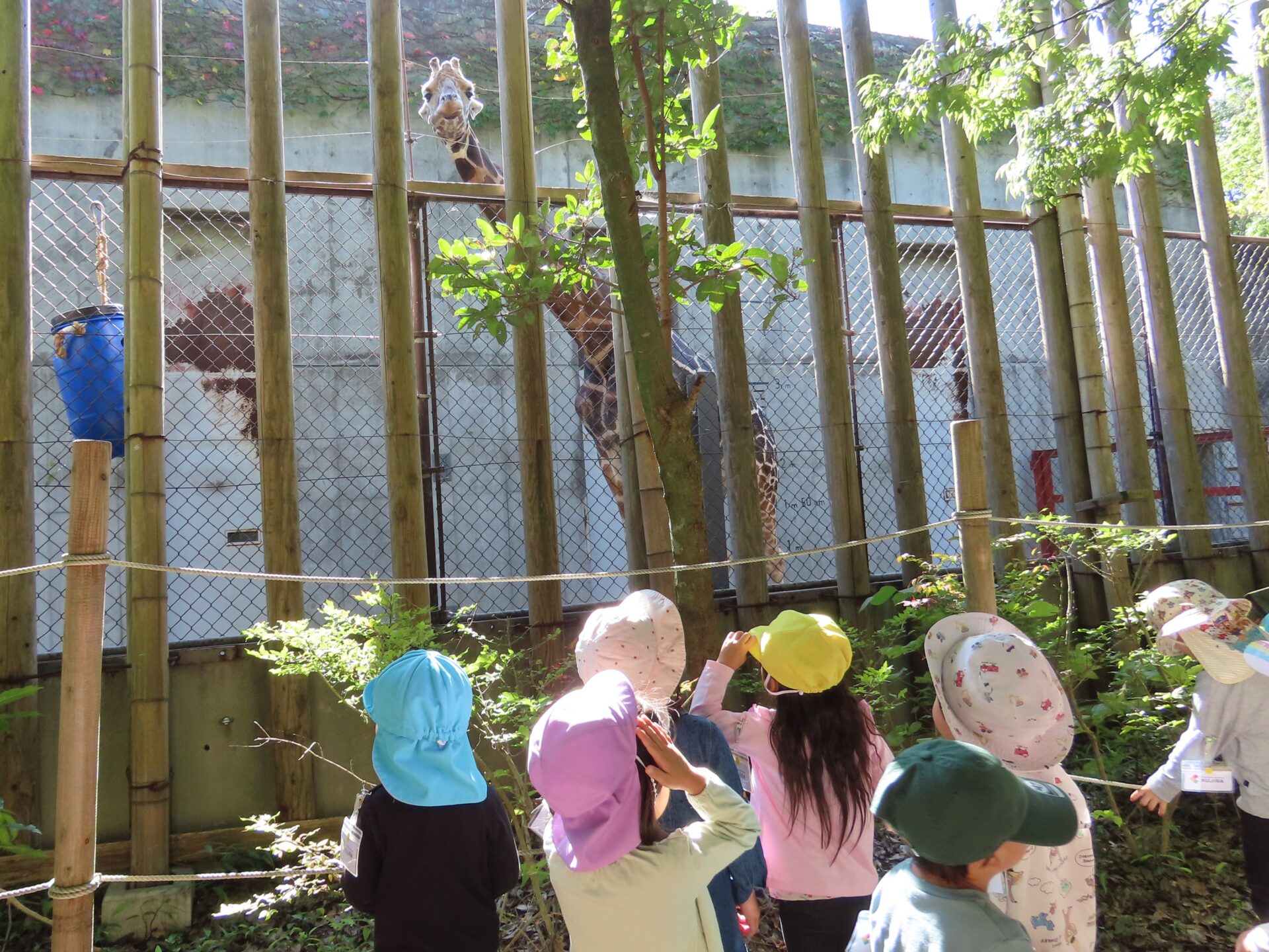 『猛獣舎』からバスに向かう途中、キリンも発見しました。