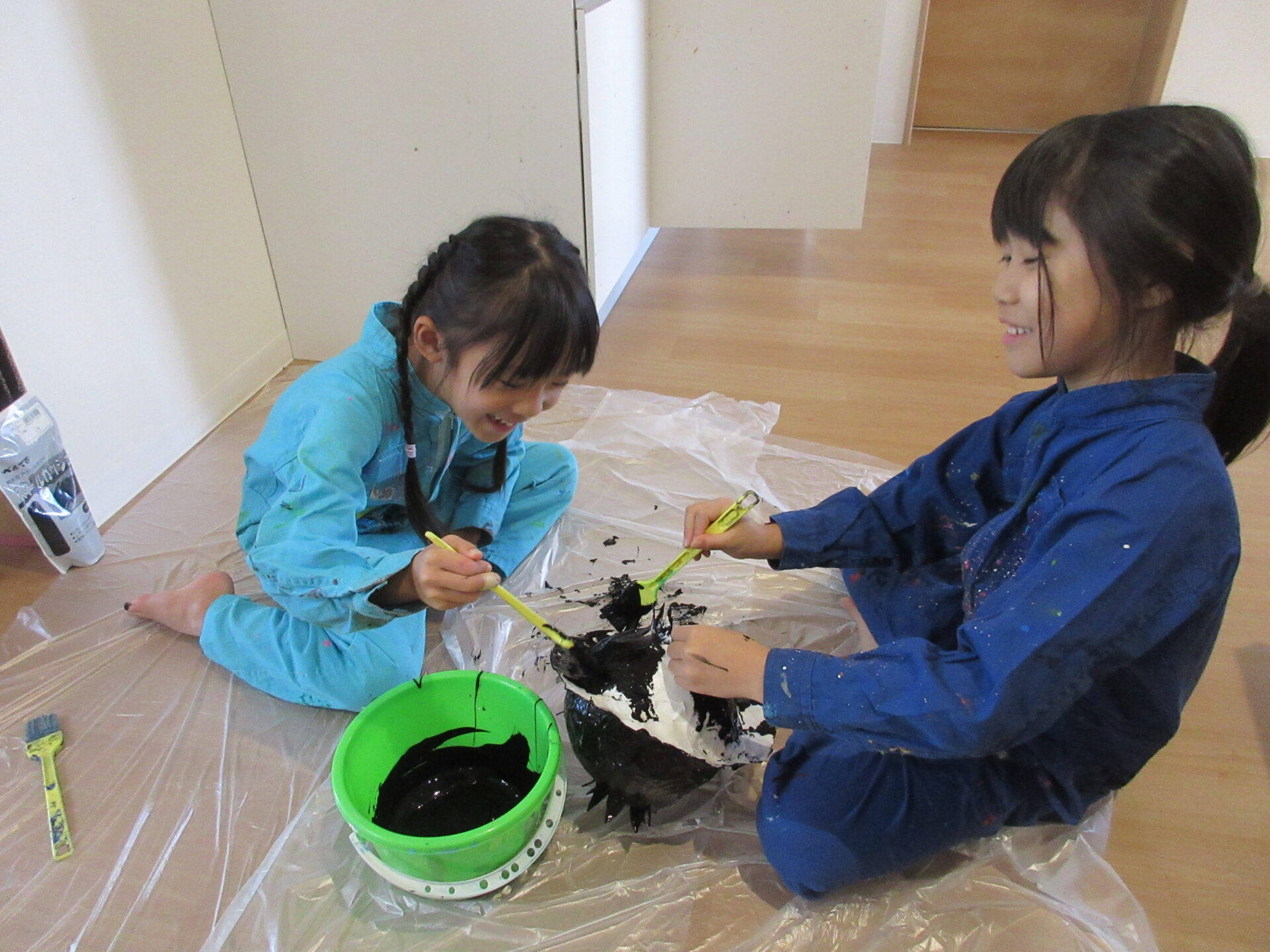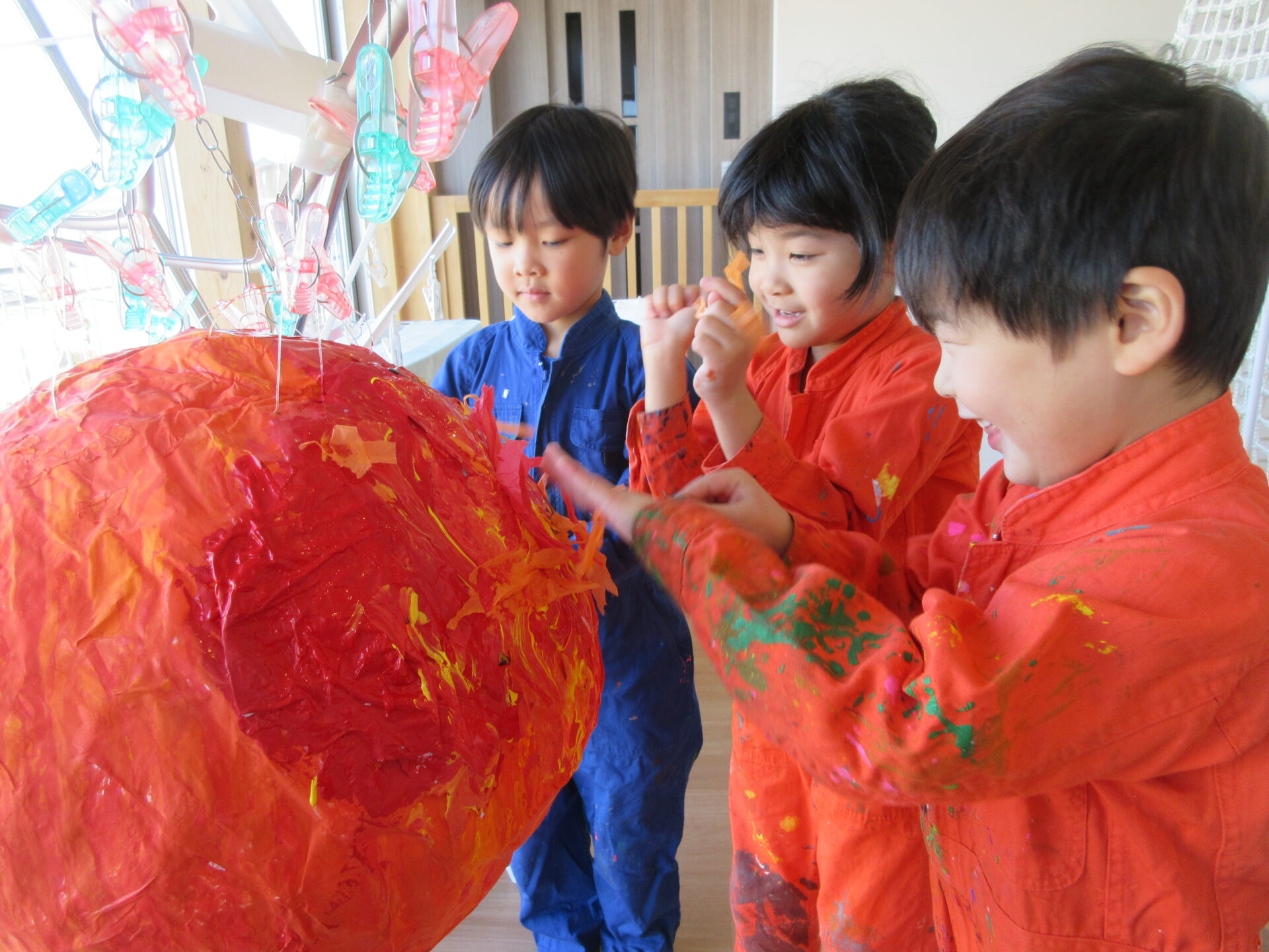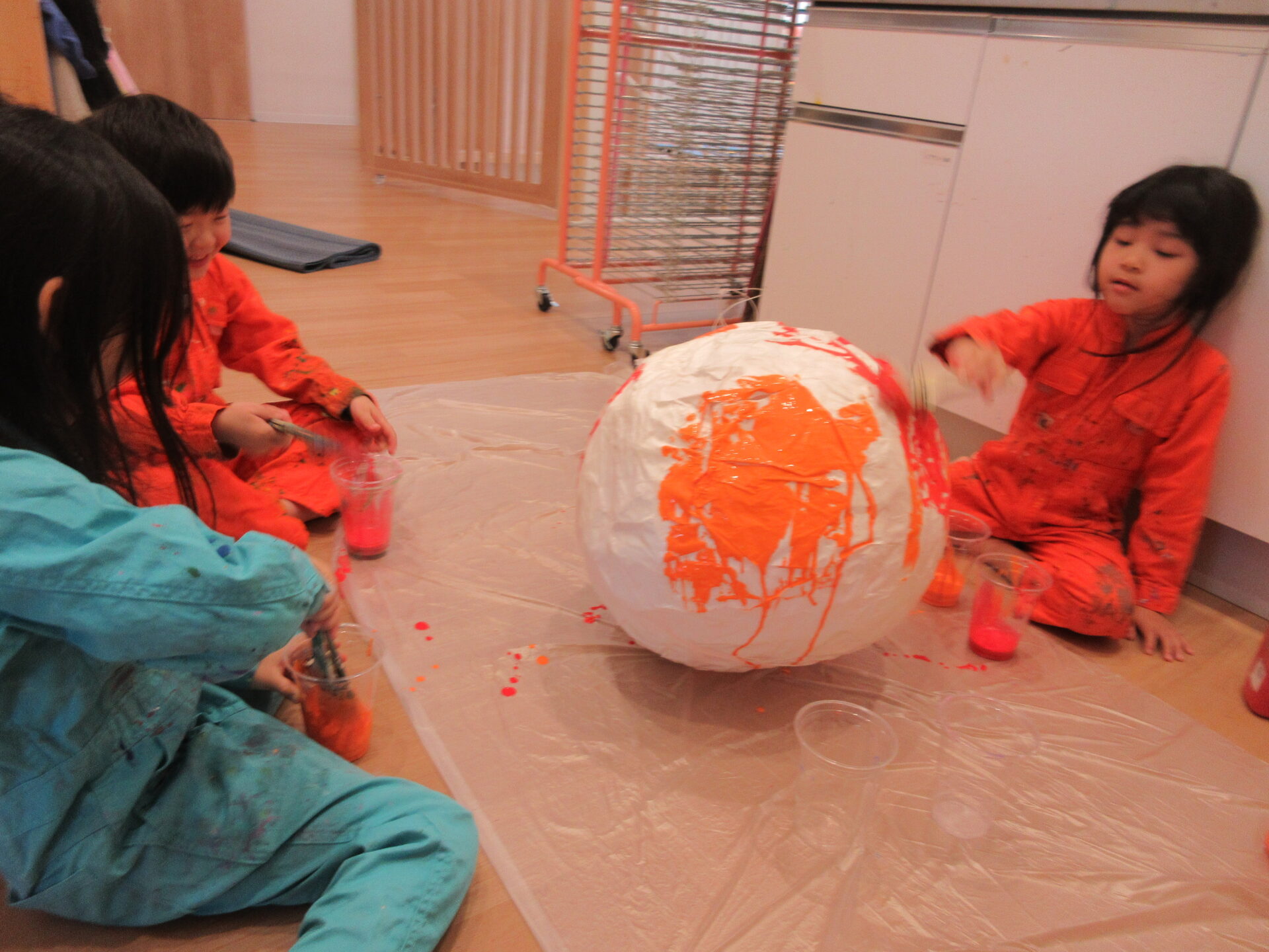発表会で創作劇「ほしのものがたり~ほしのたんけん~」を行うため、小道具や衣装づくりもこどもたちで準備を進めています。