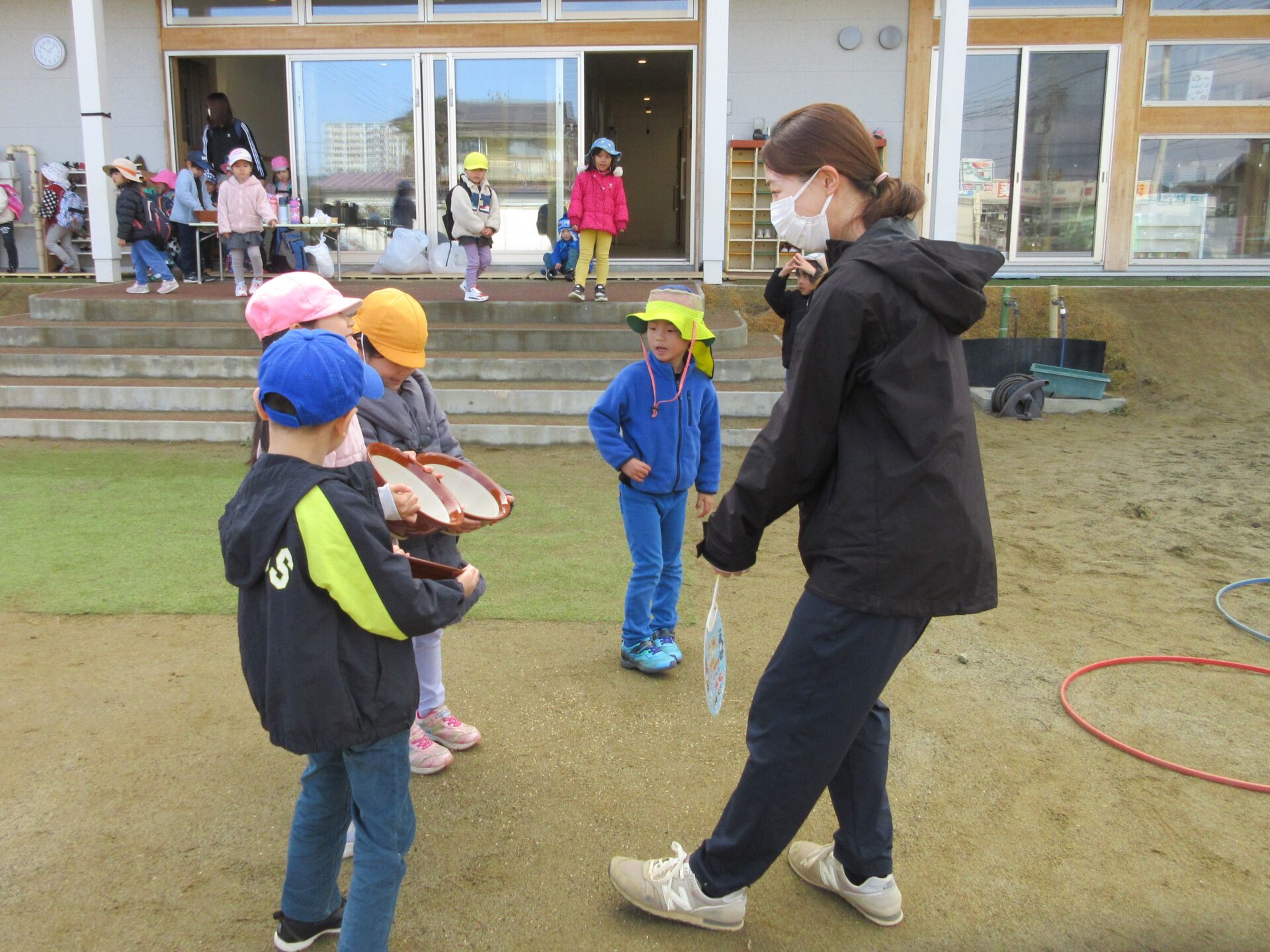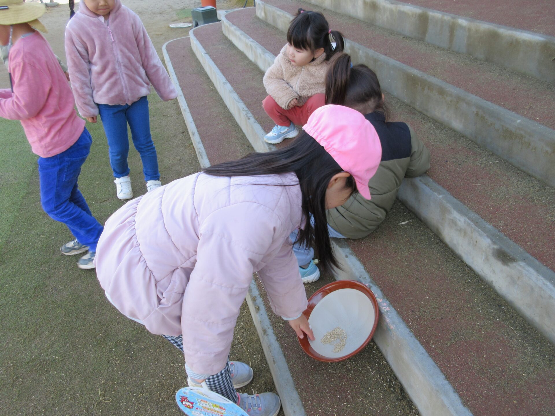 くじら組(5歳児)で稲刈りをしたお米のもみすりをしました。