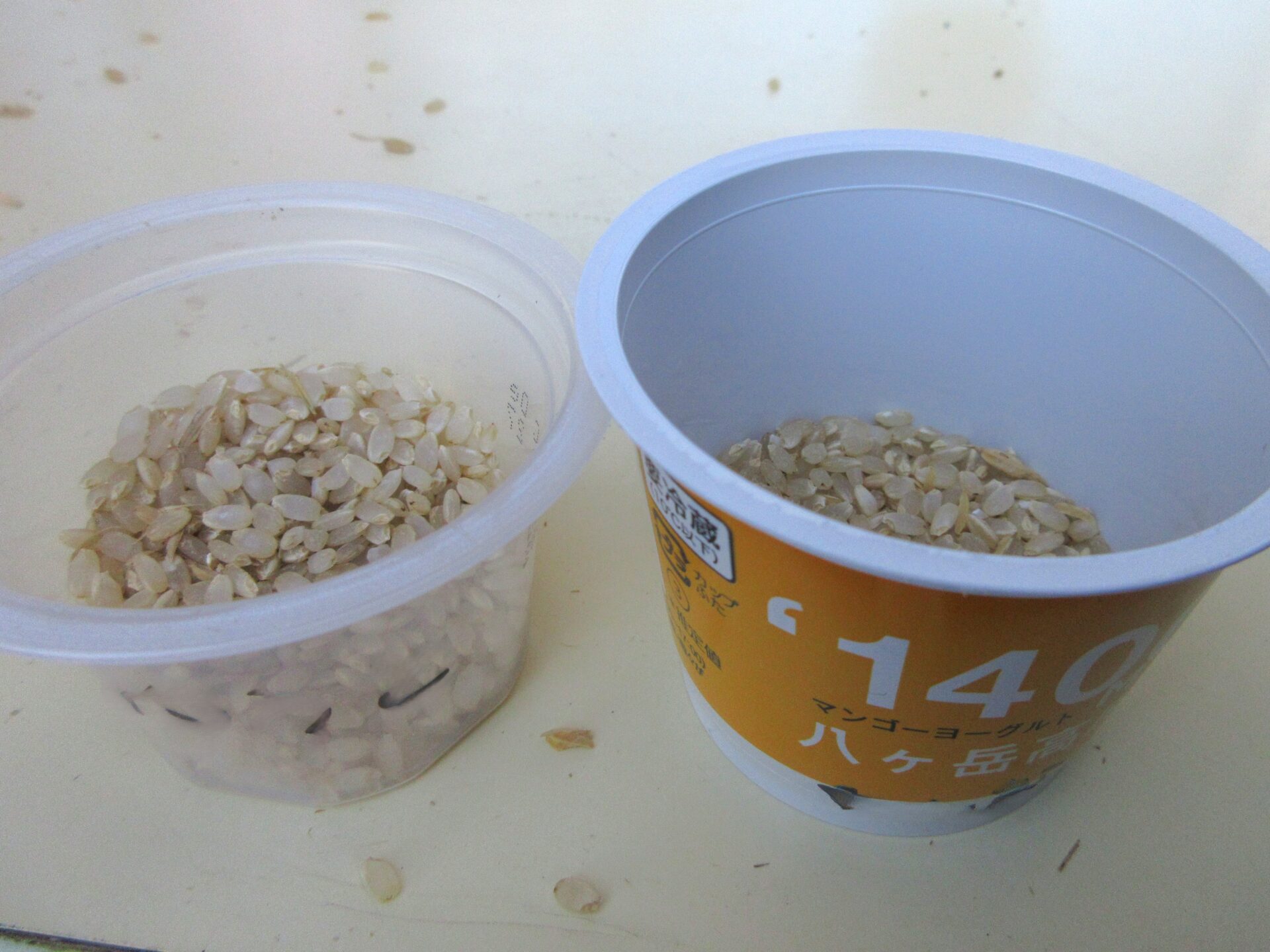 すっていくうちに籾殻がはがれ、玄米が現れてきました。