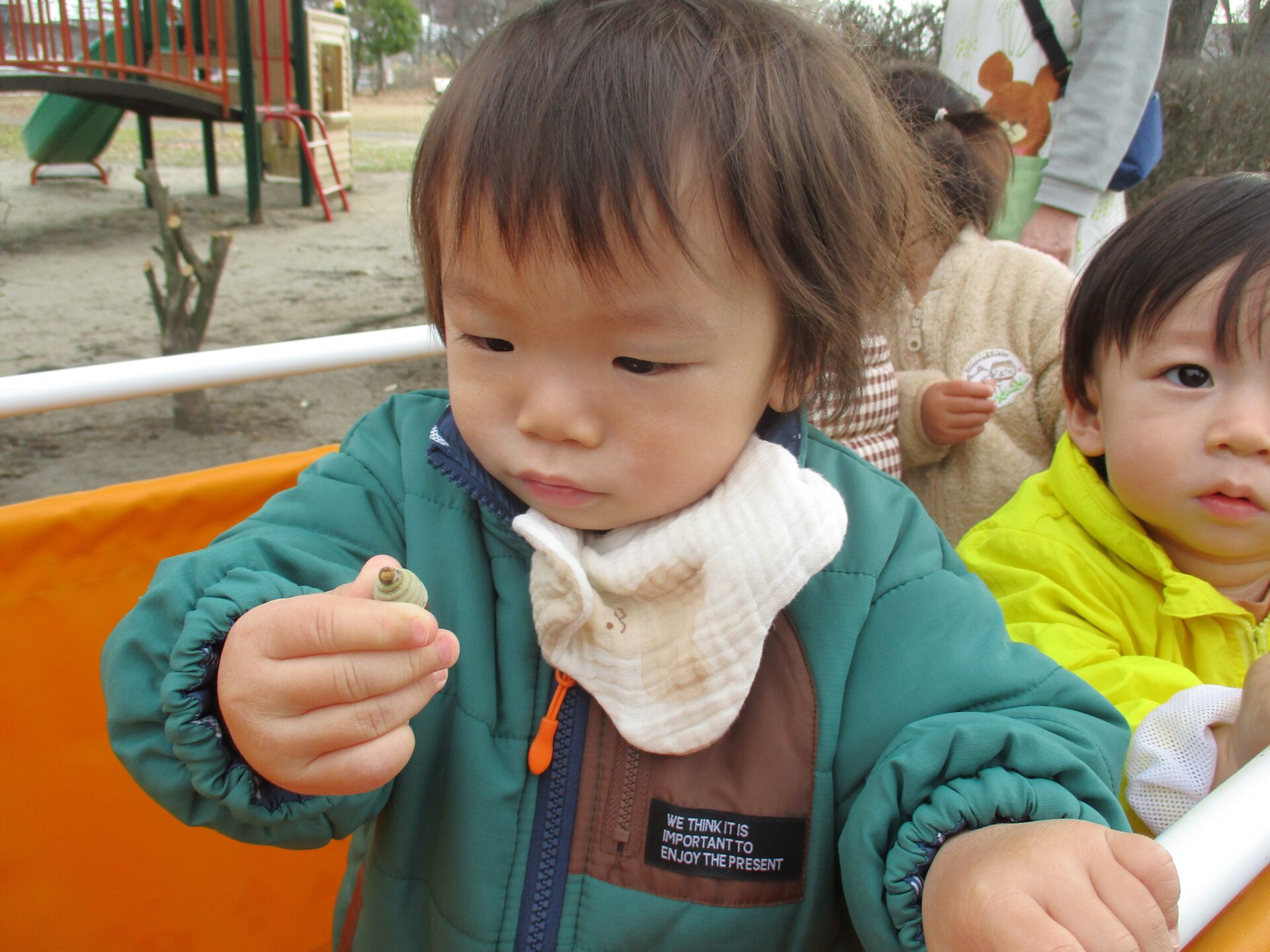 うみ組(0歳児)のこどもたちとお散歩に行ってきました。