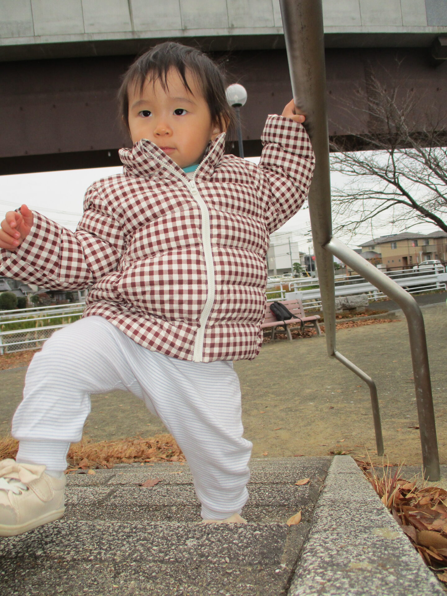 手すりを掴んで、力強く階段も登れるようになってきています。