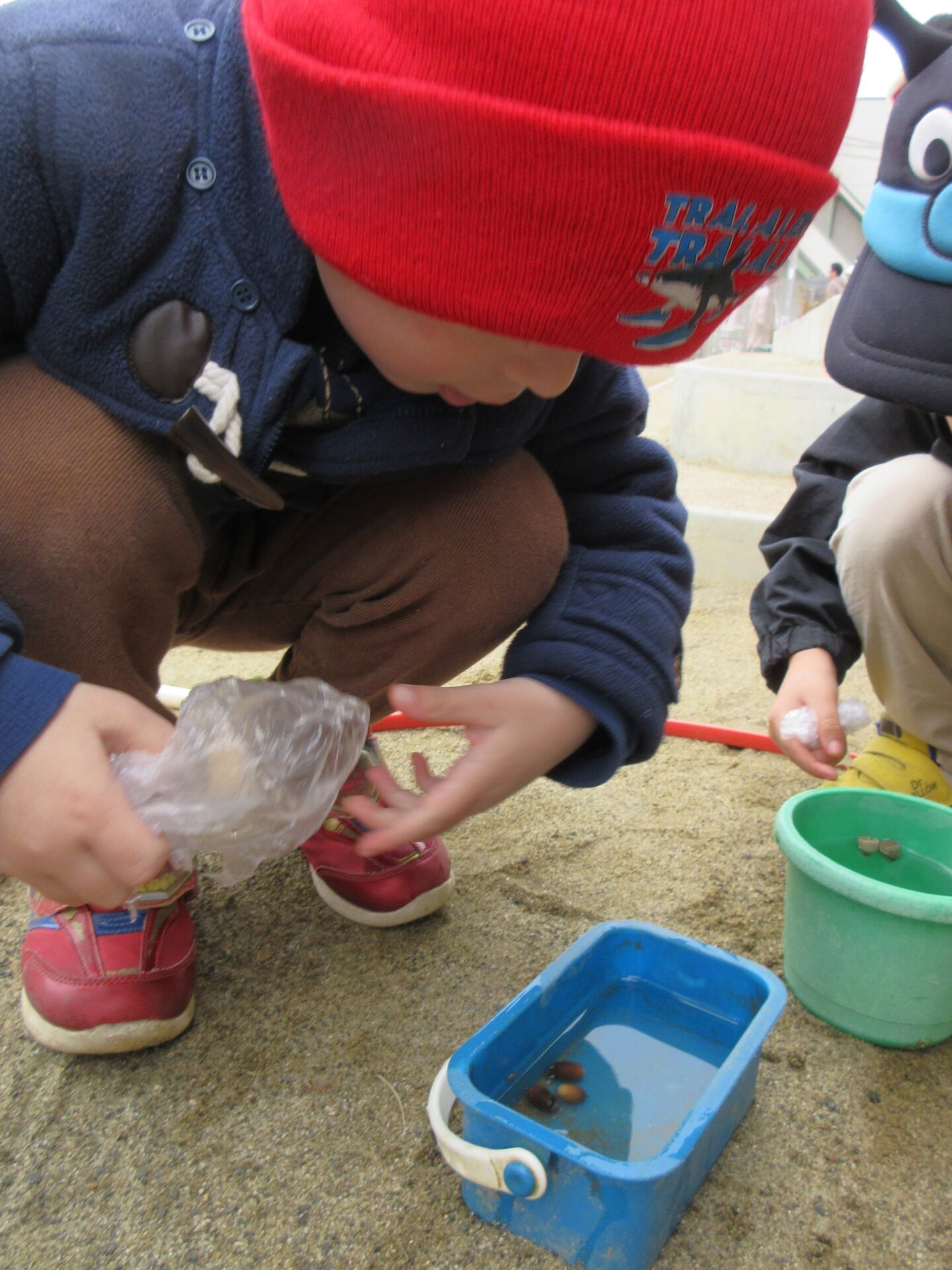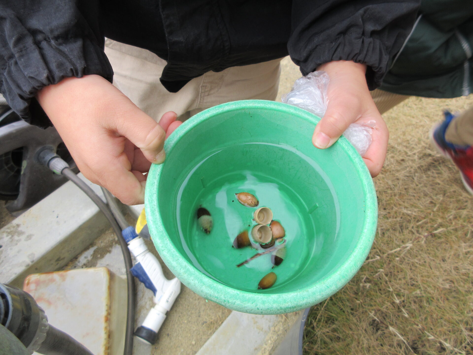 実際に水に浮かべてみると「沈むどんぐり」と、「浮かぶどんぐり」がありました。