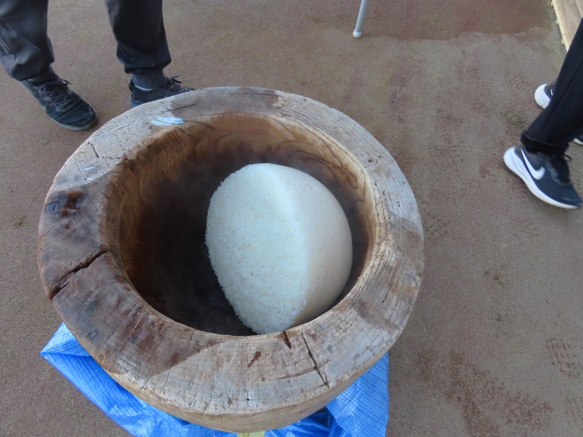 職員の真剣な姿を見ていたこどもたちから『がんばれ!!!』と声援が上がり、杵を持つ職員は更に張り切っていました。