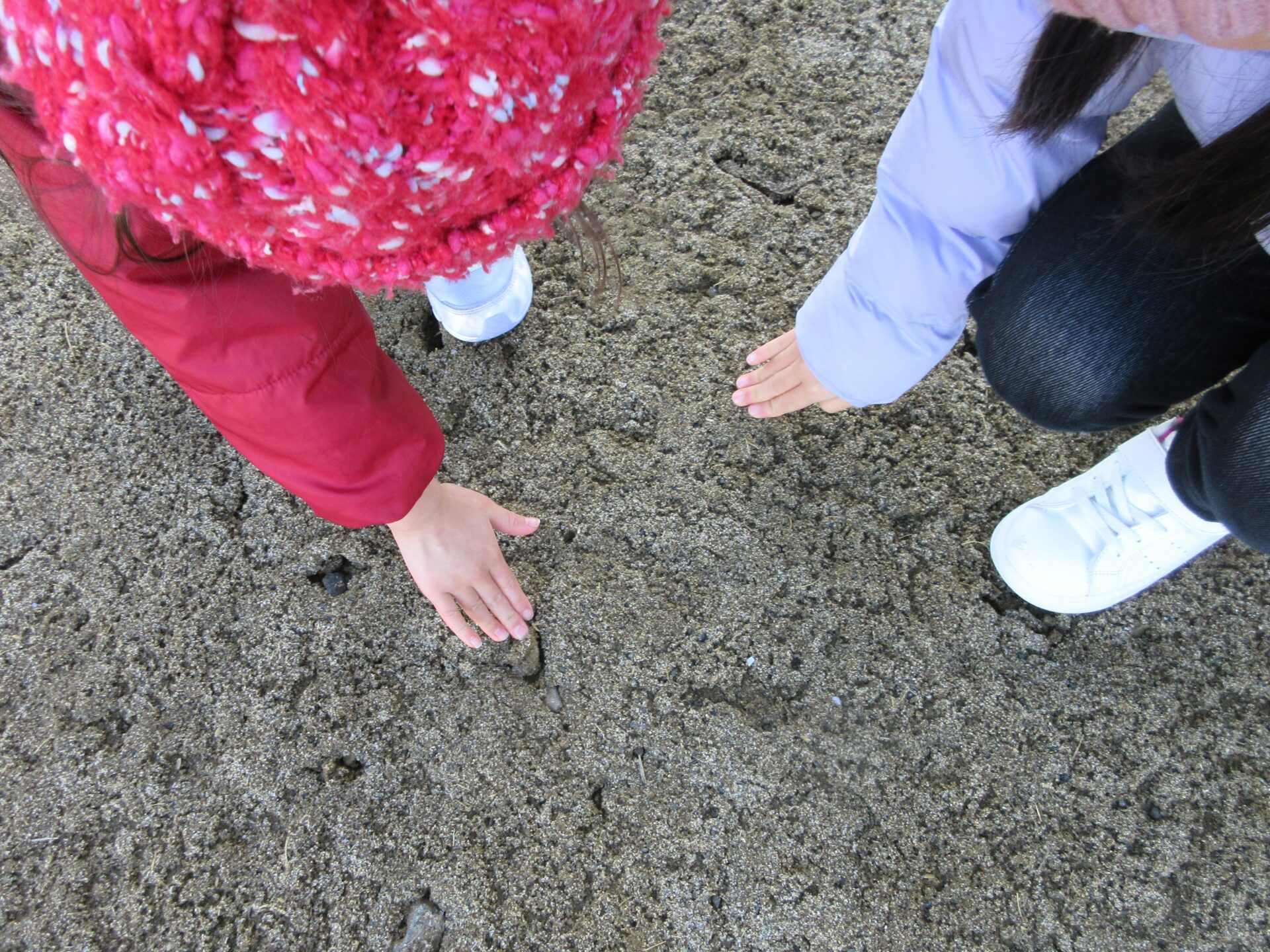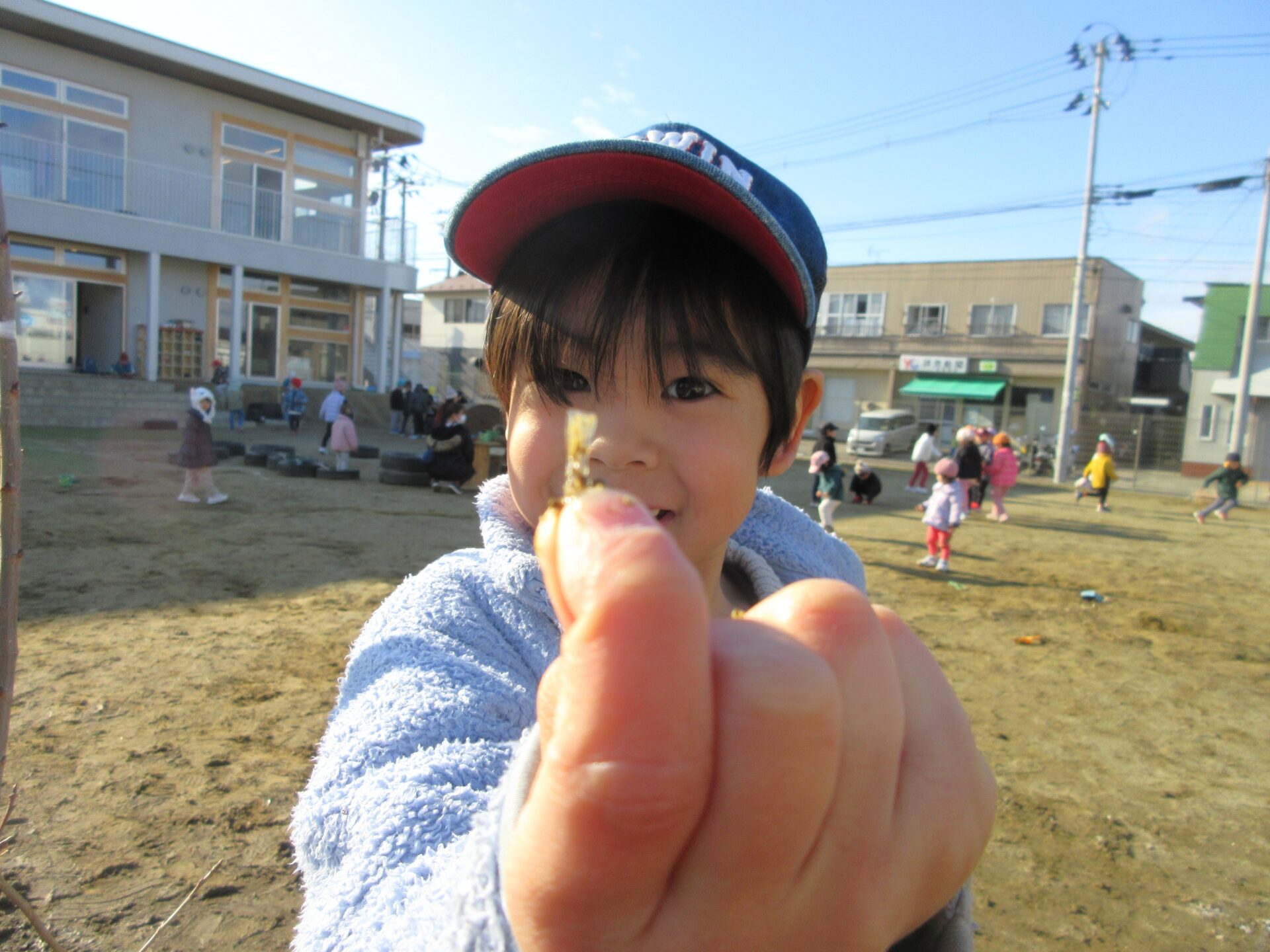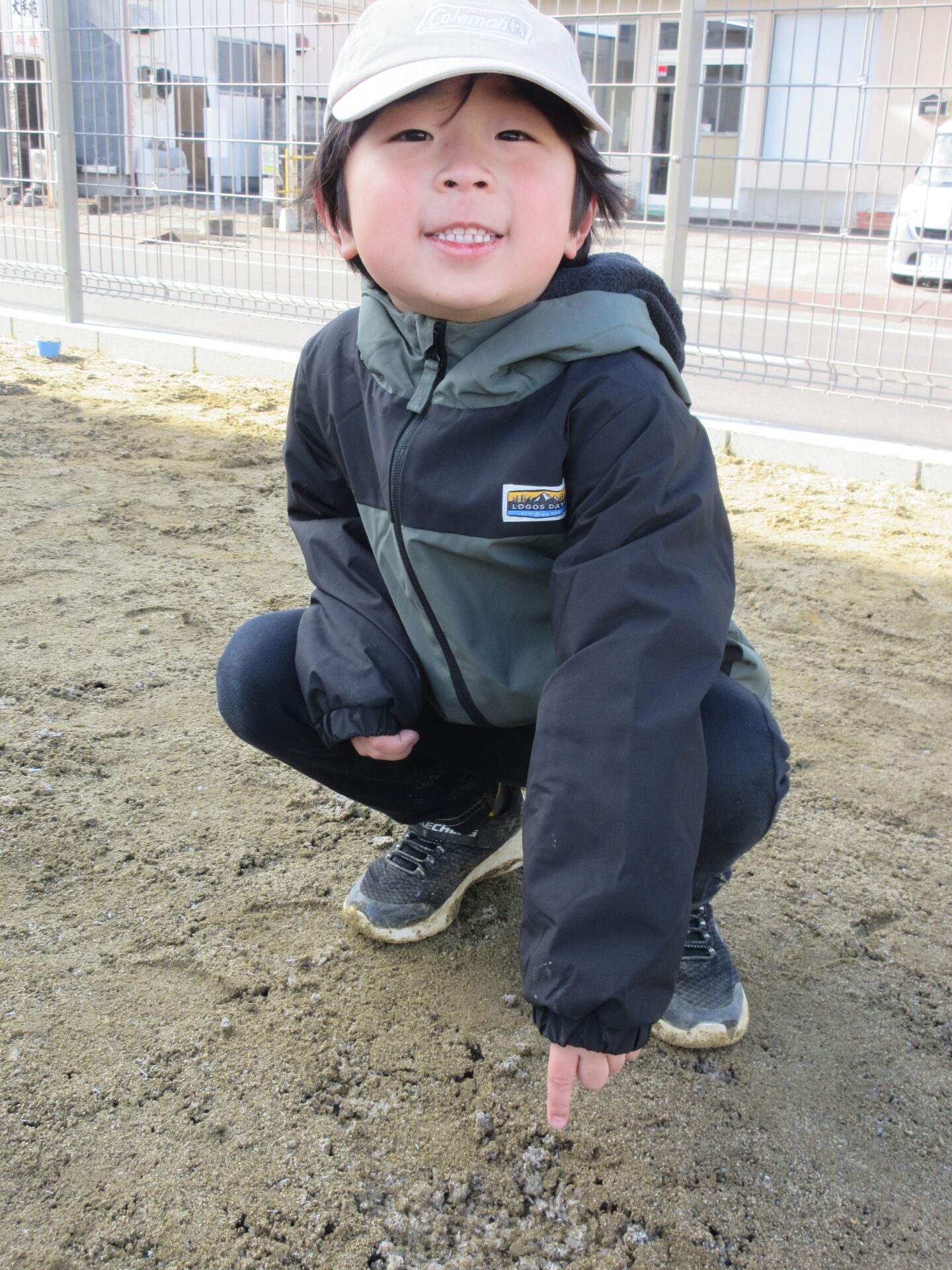 冬の寒い朝、園庭に出てみると盛り上がっている地面を発見しました。