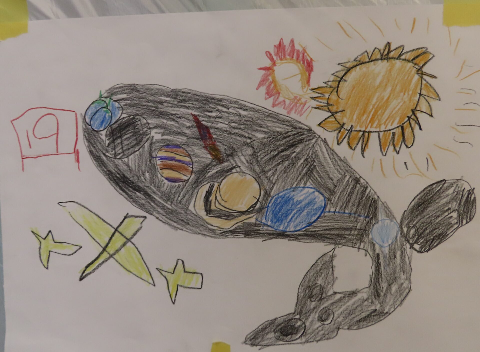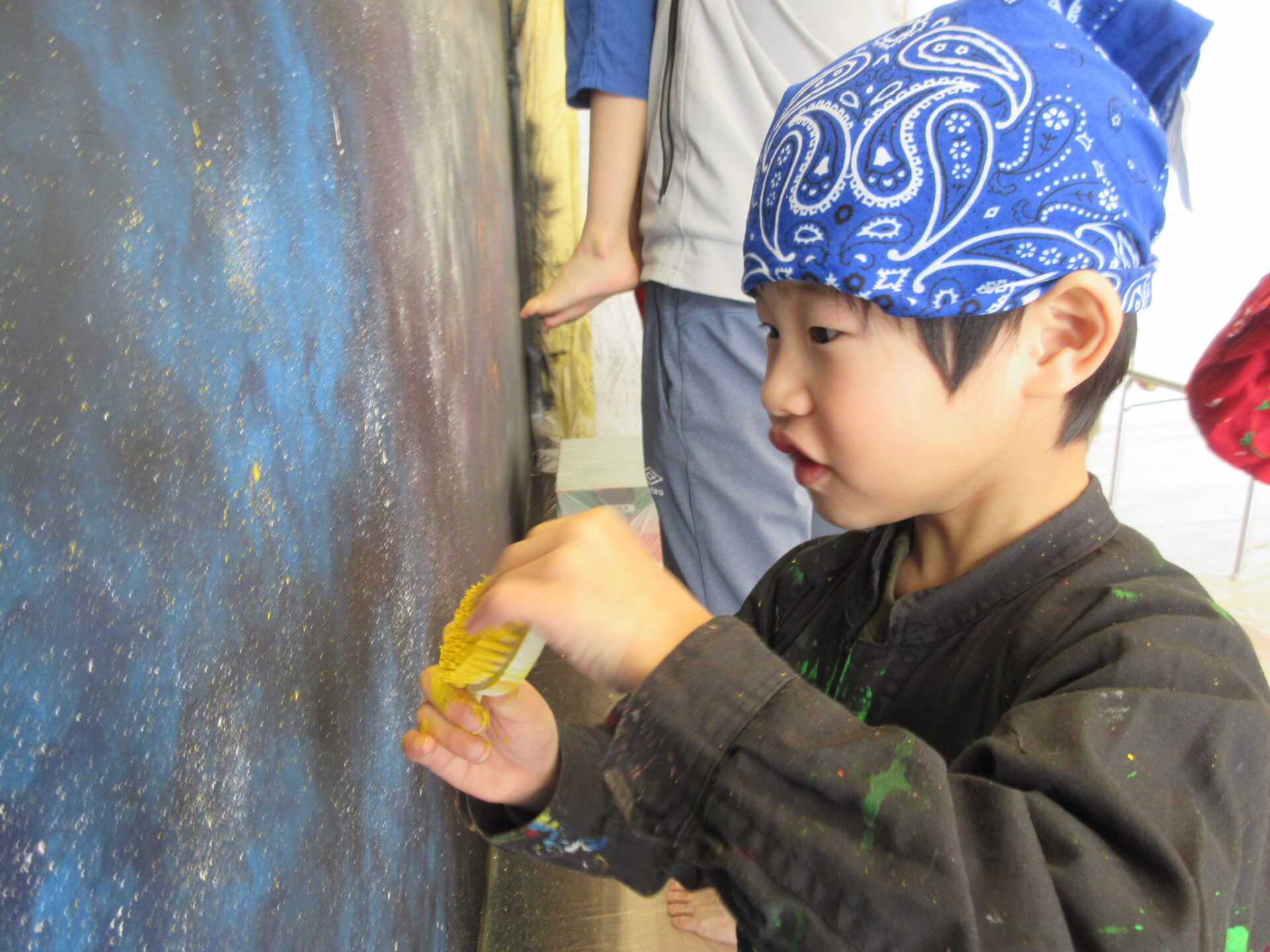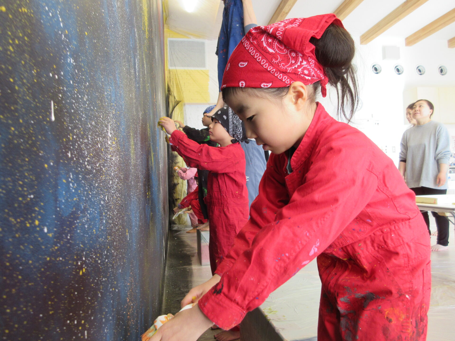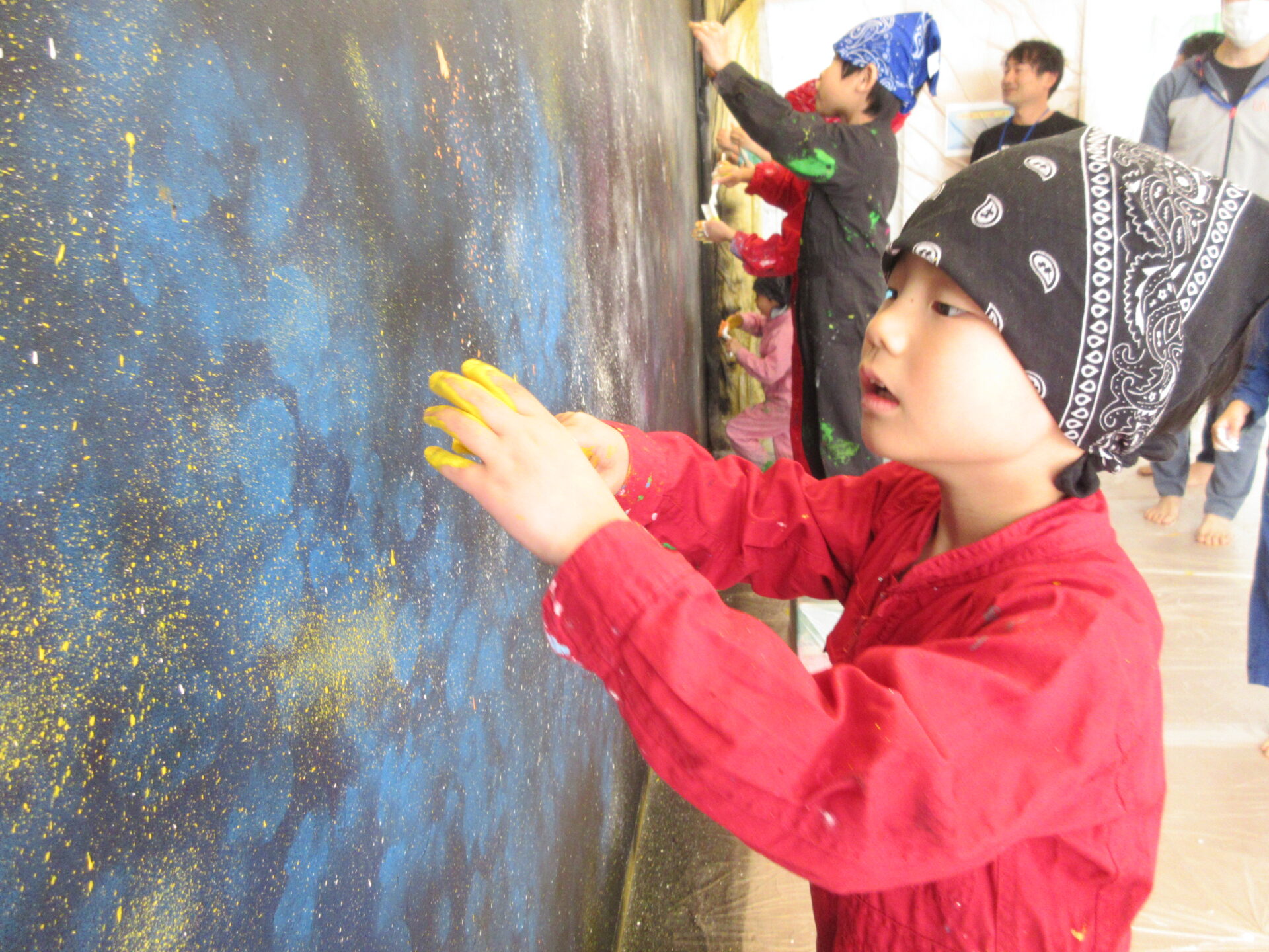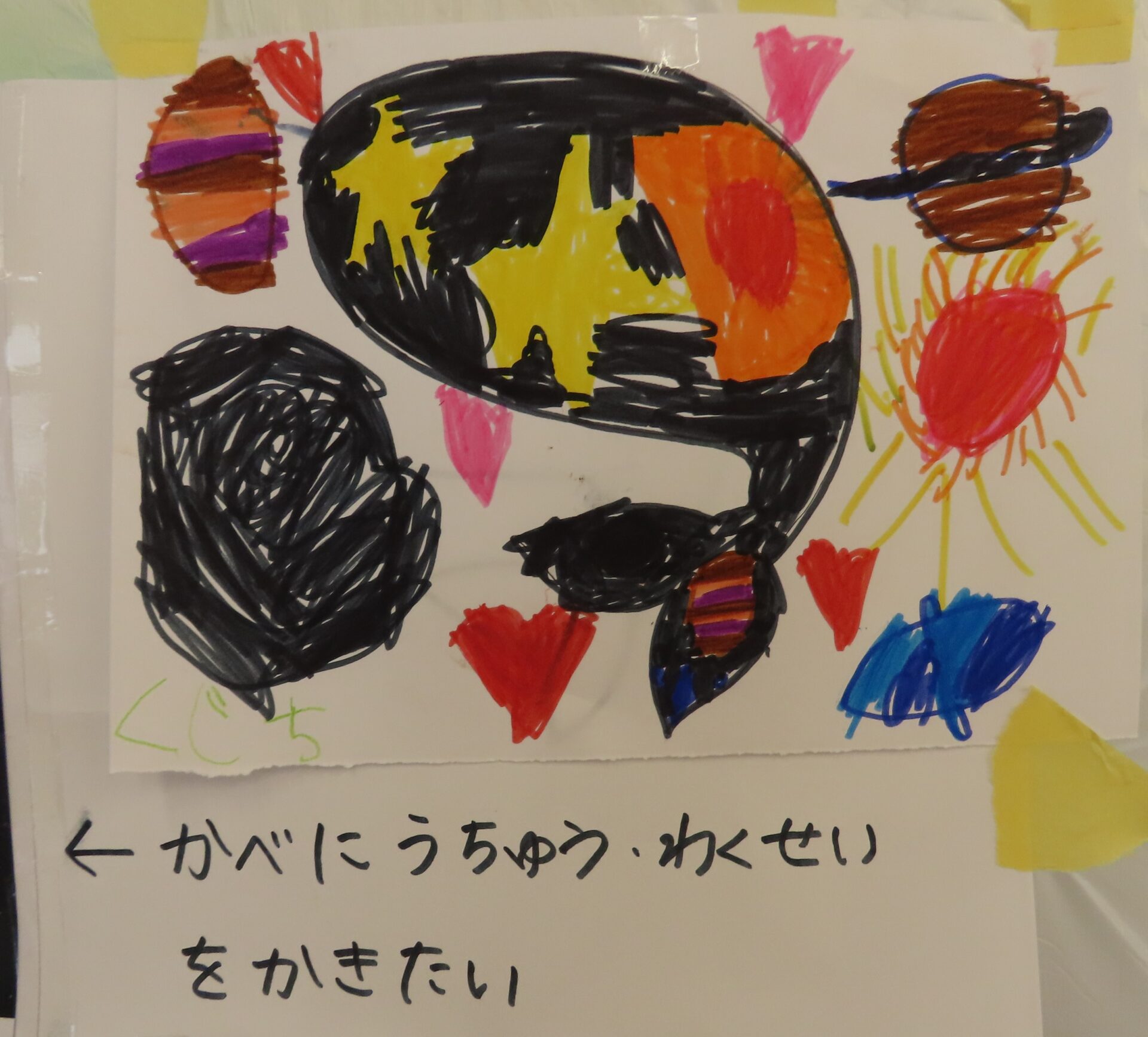 みんなで描いた宇宙空間の完成が楽しみです。