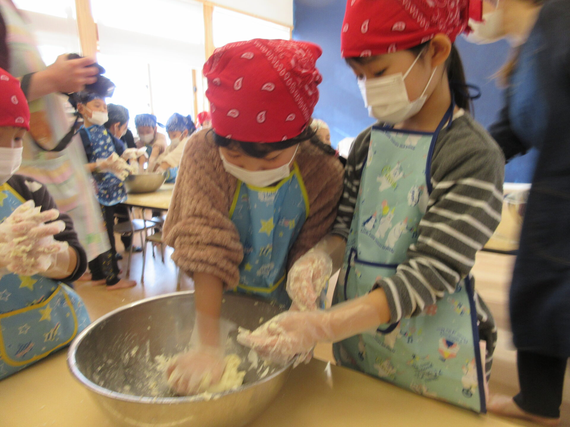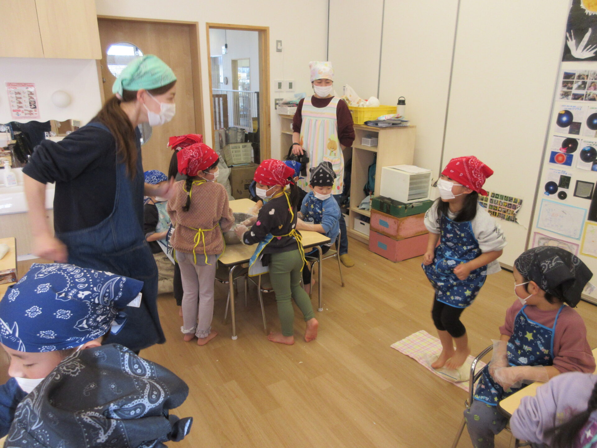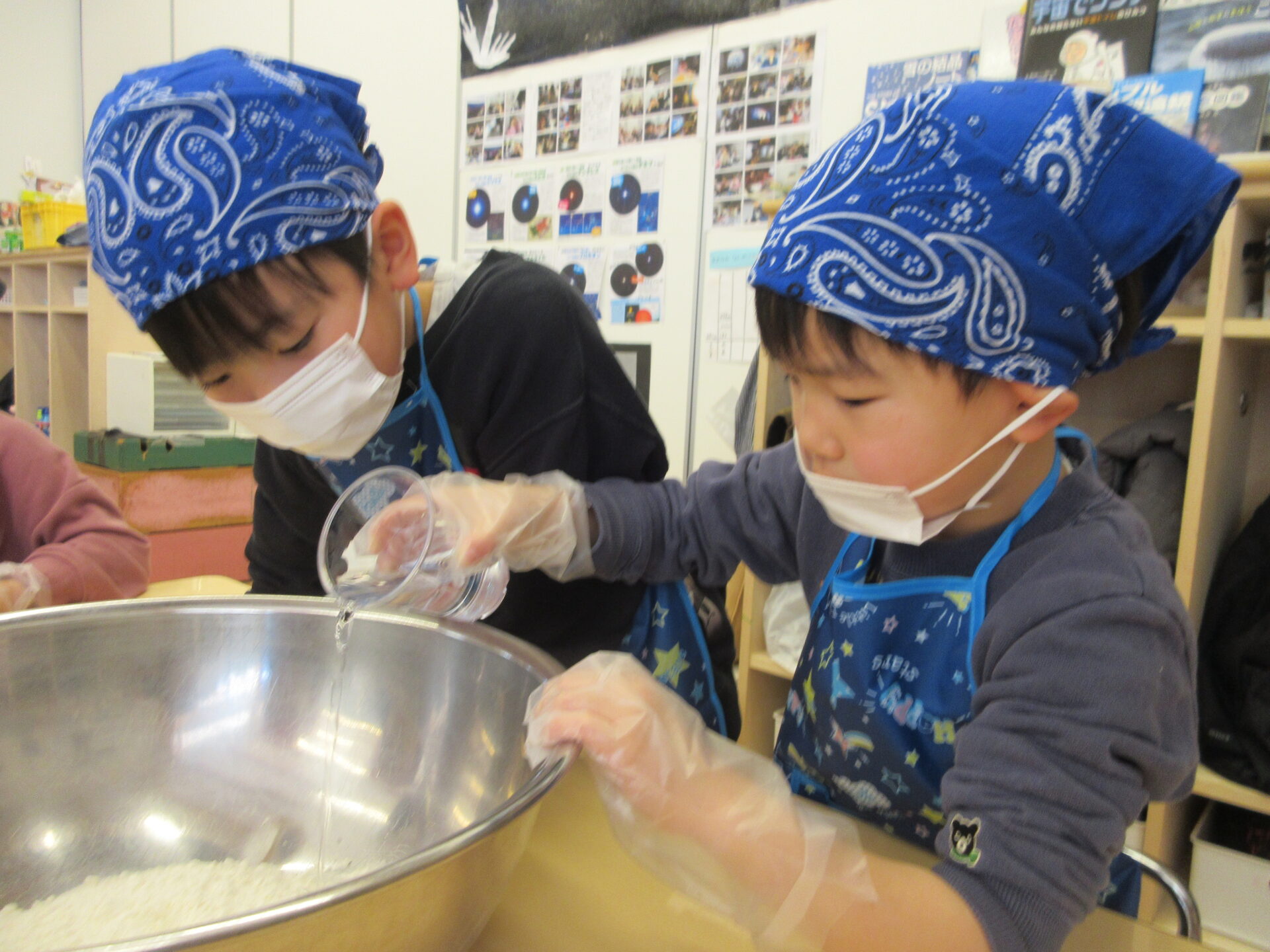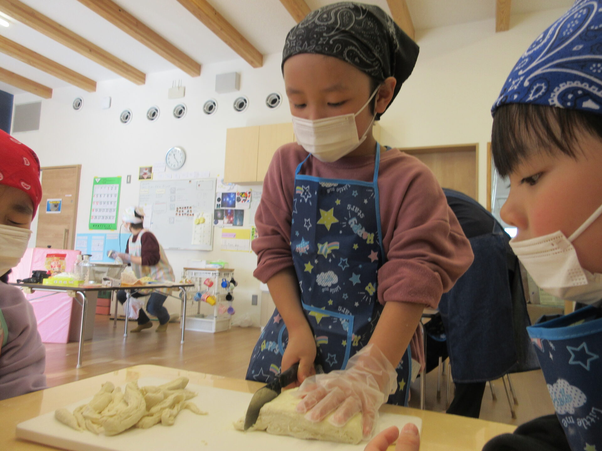 くじら組(5歳児)のこどもたちが「うどん作り」に取り組んでいます。
