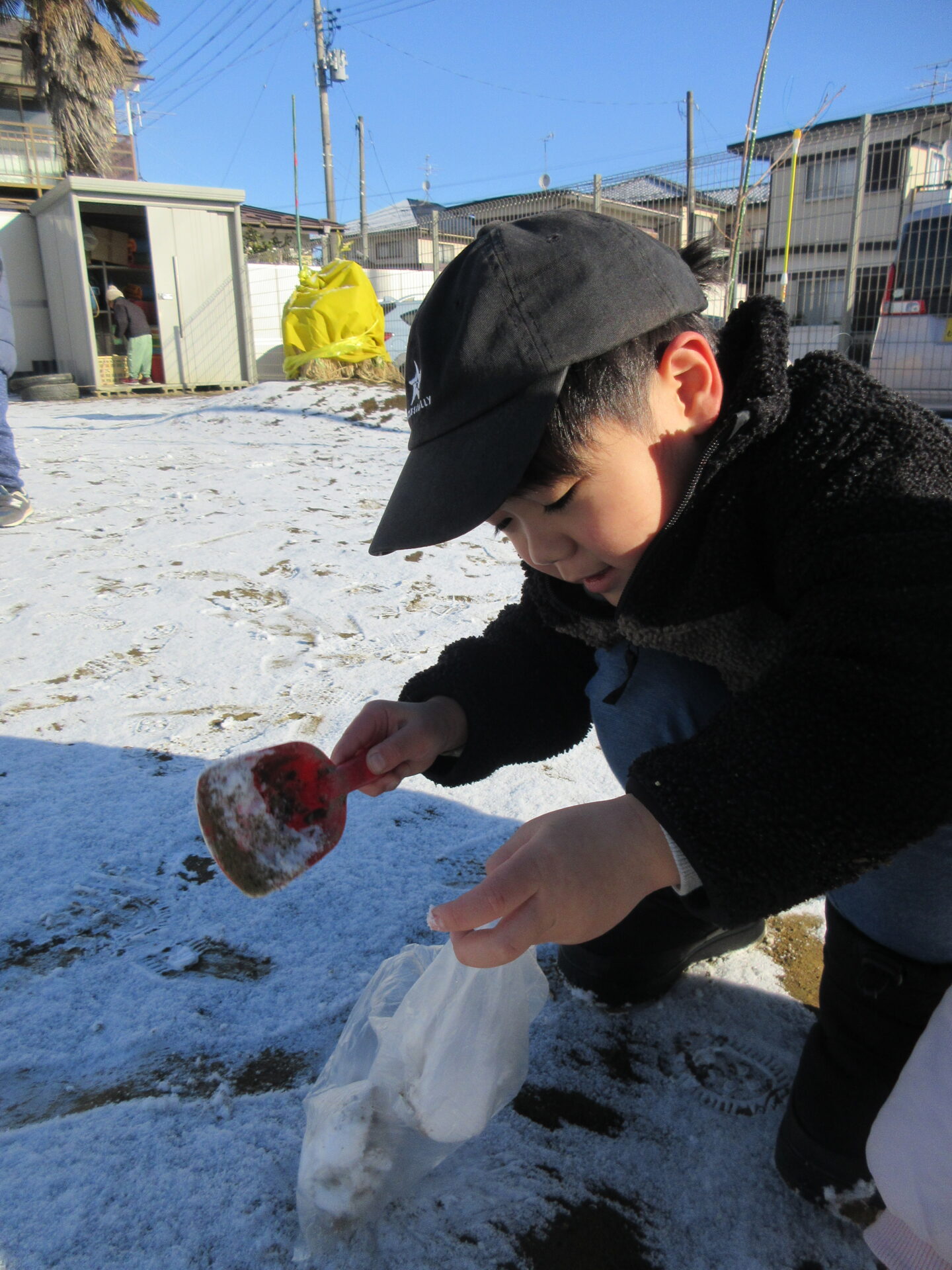 少量の雪でも雪玉作りやそり遊びと、冬ならではの遊びを楽しんでいたそら組です。