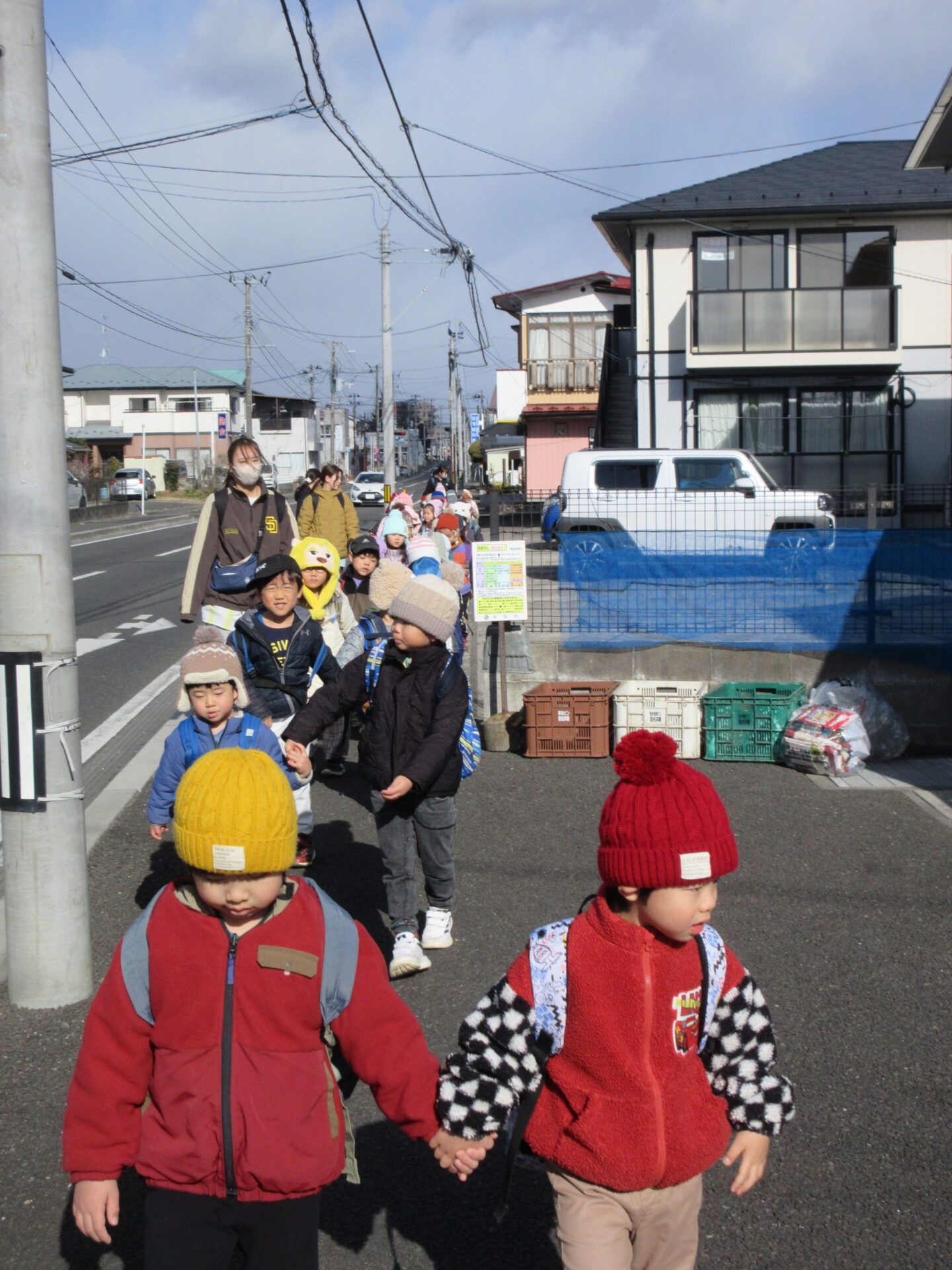 にじ組(3歳児)が少し遠い公園まで歩いて行ってきました。