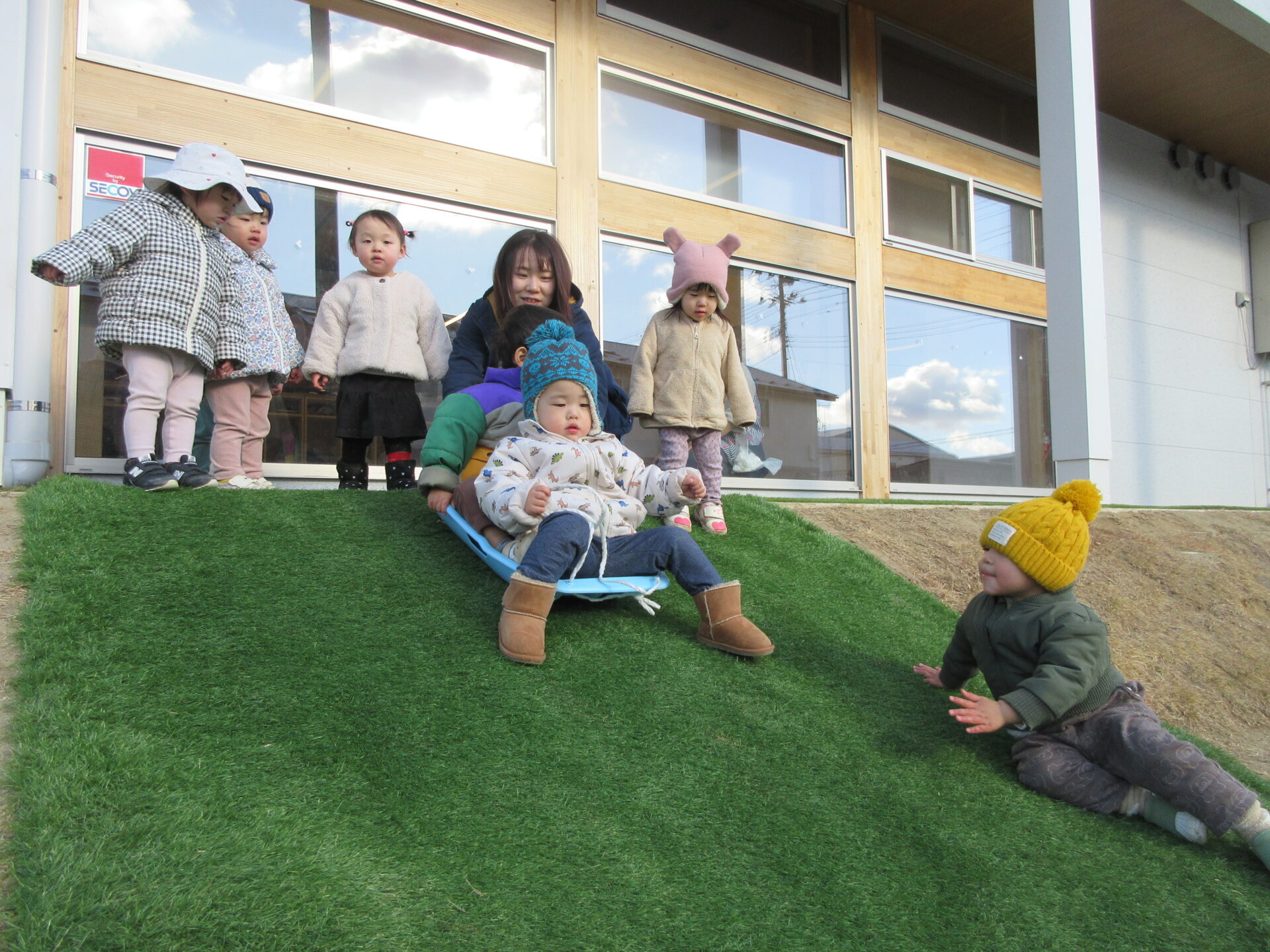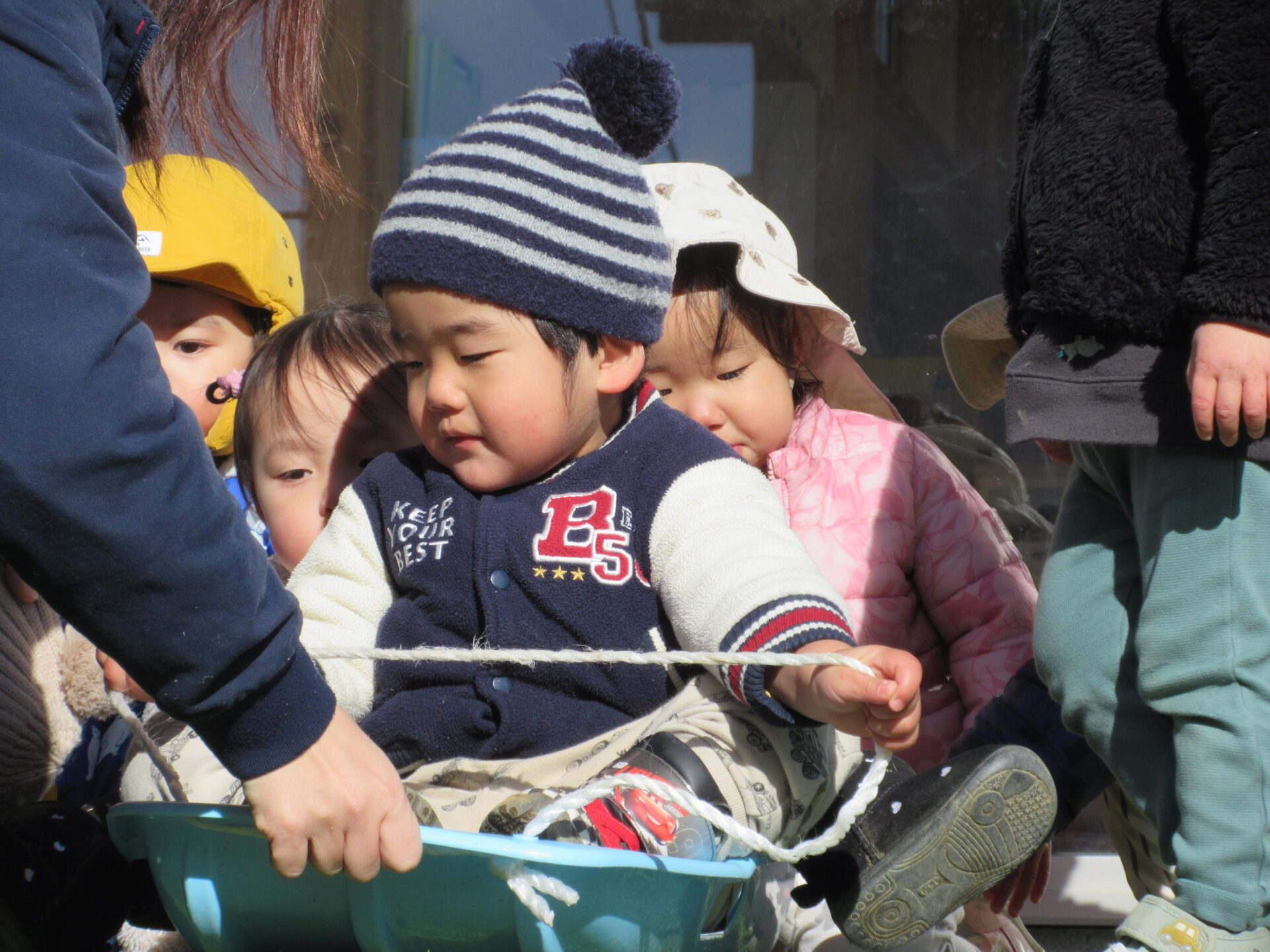 だいち組(0.1歳児)のこどもたちとそり遊びをしました。