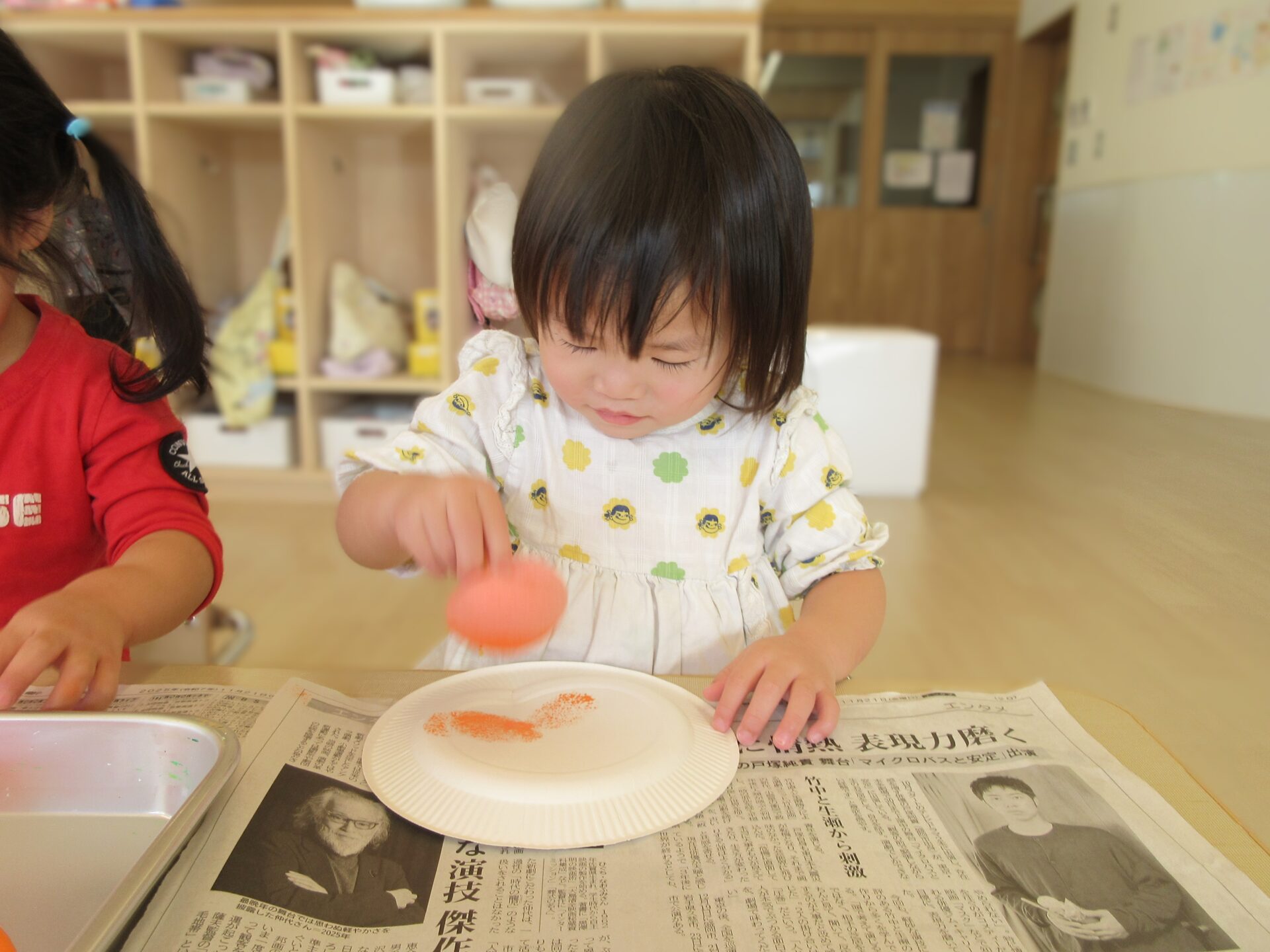 だいち組(0,1歳児)が絵具遊びをしました。