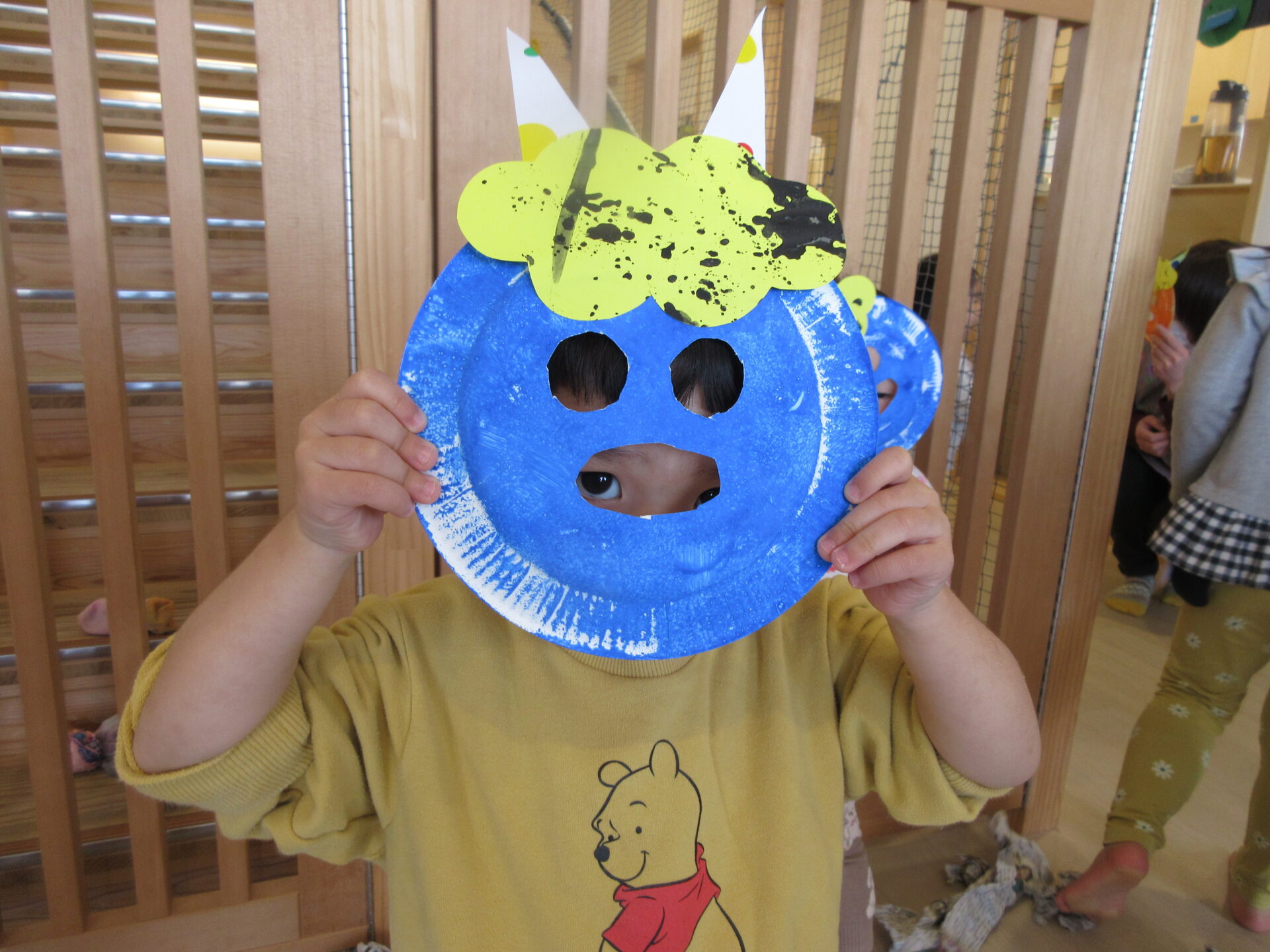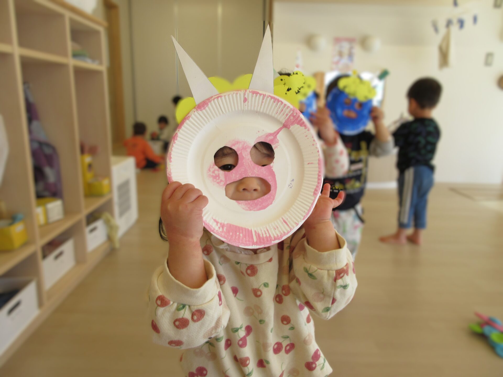 作ったお面は、くじら組(5歳児)が企画した『豆まき』で使用しました。