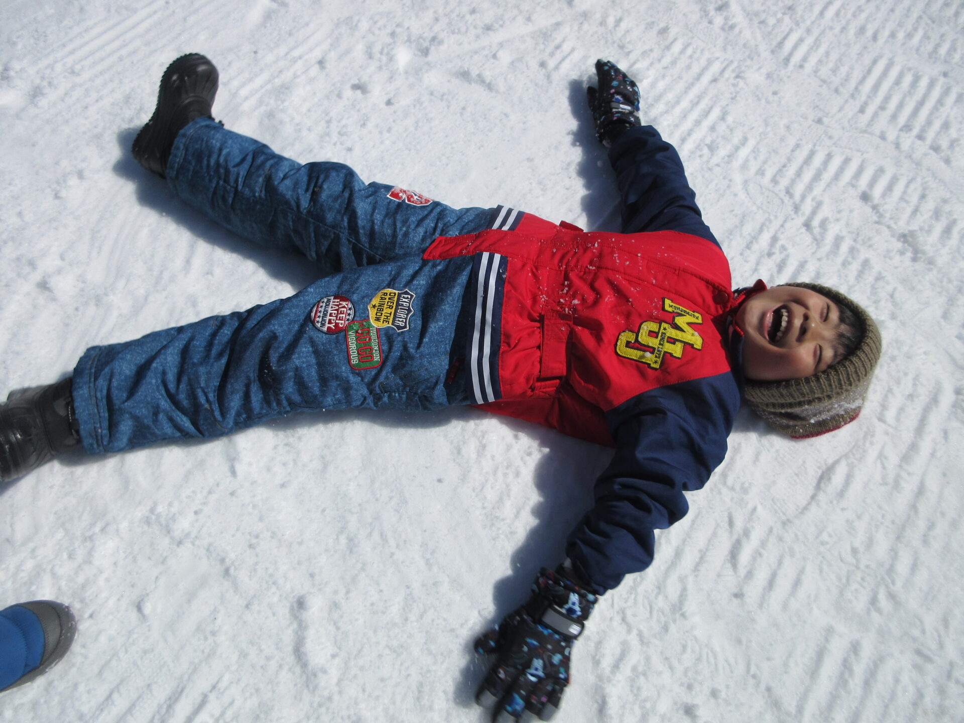 うっすらではなく、どっさりと積もった雪の上に寝転び、全身で雪を感じます。