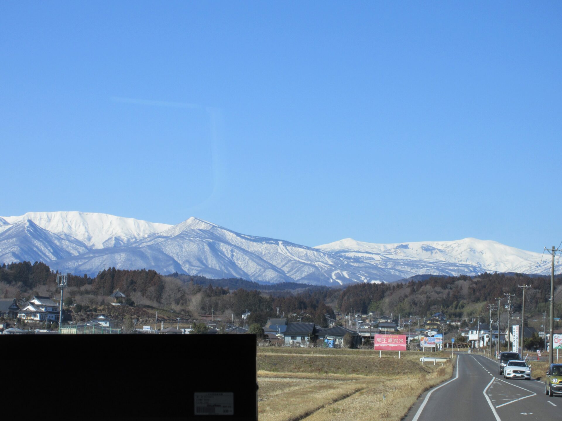 バスに揺られること1時間とちょっと…雪山が見えてきました!