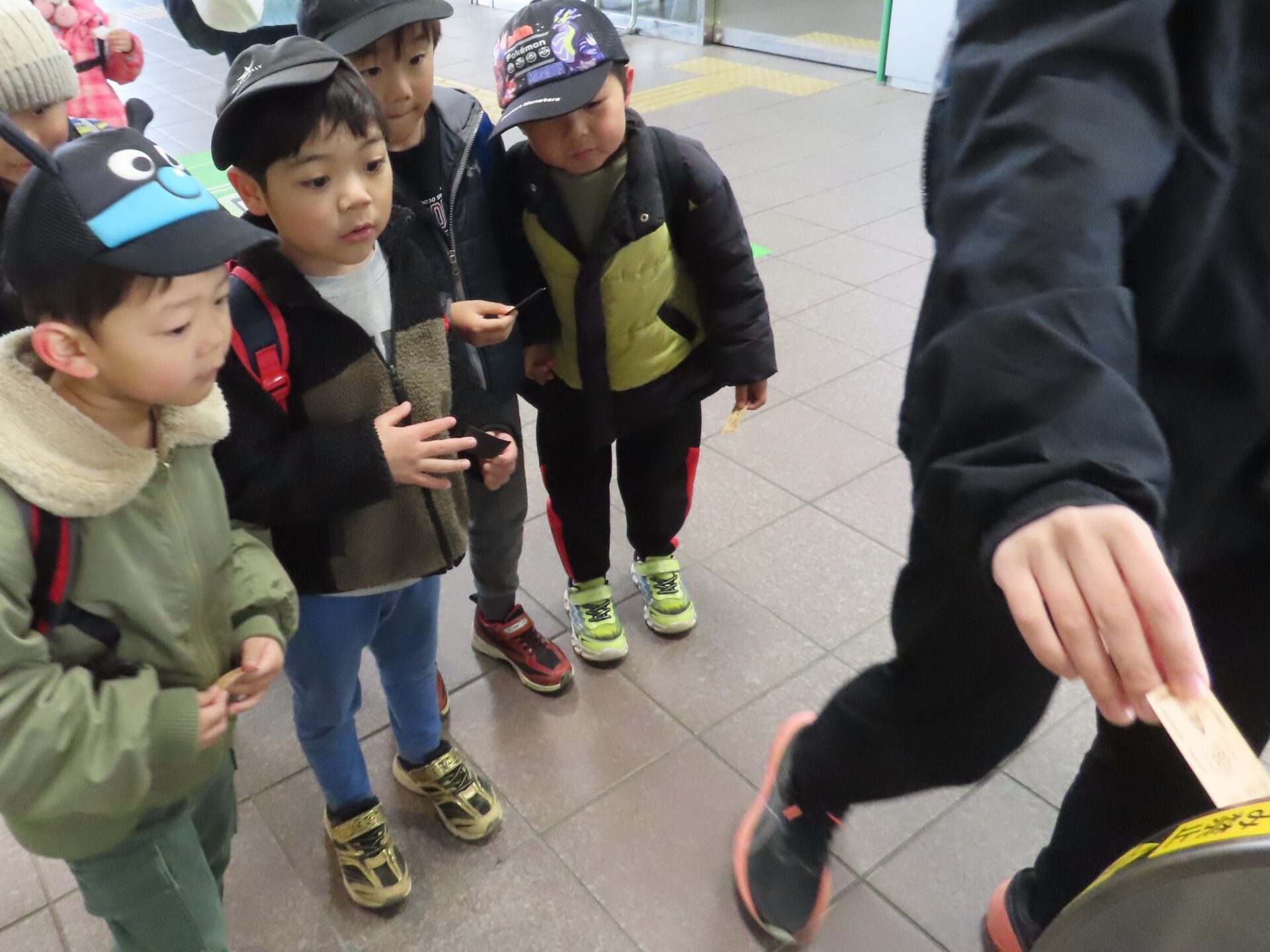 そら組(4歳児)が『ある計画』のために、電車に乗ってお出掛けしました。