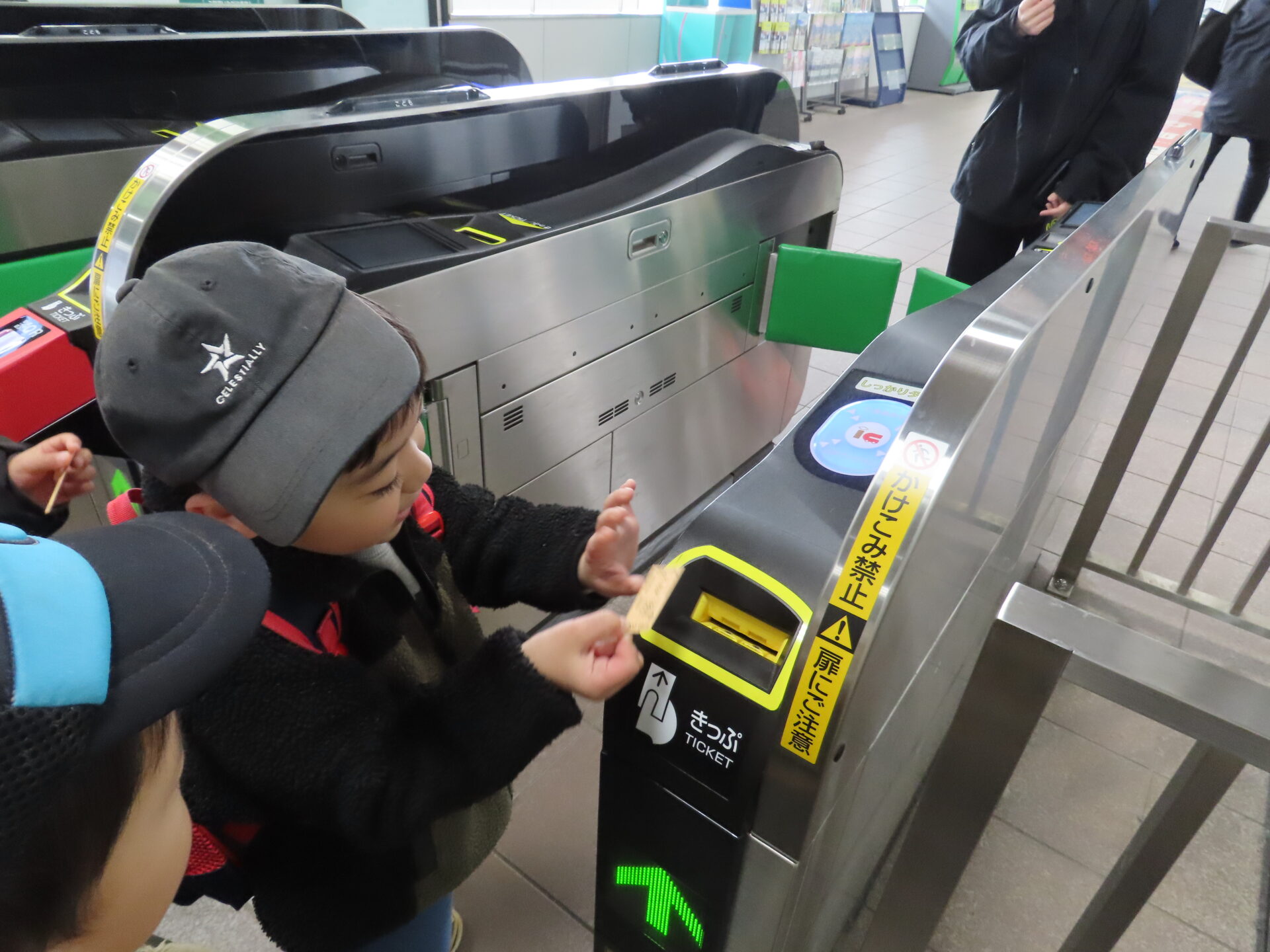 大事な切符を手に持ち、改札の通り方を確認していきます。