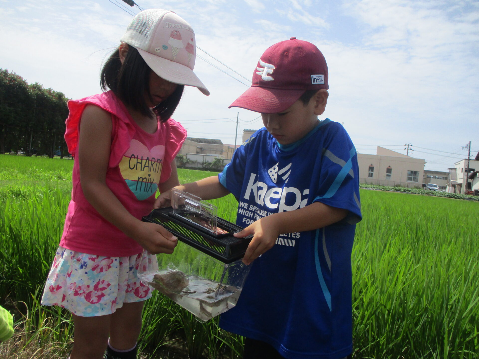 田んぼに戻り、元気に泳ぐカエルを見て、「元気になって良かった」と園に戻ってきた子どもたちの表情は、いつもよりも頼もしく感じました。