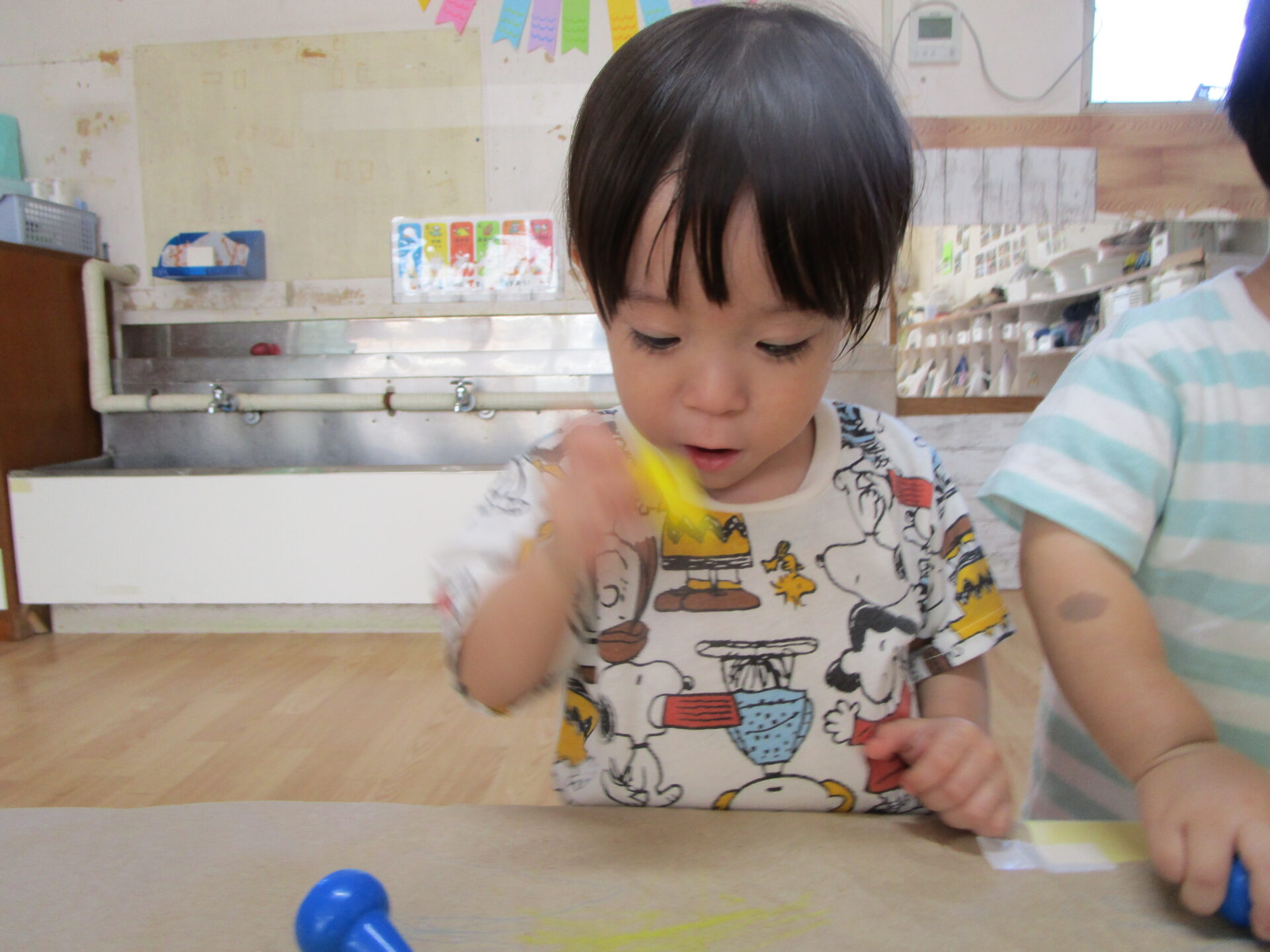 握りやすい形状のため、0~1歳児の子どもたちにとって描きやすいようです。