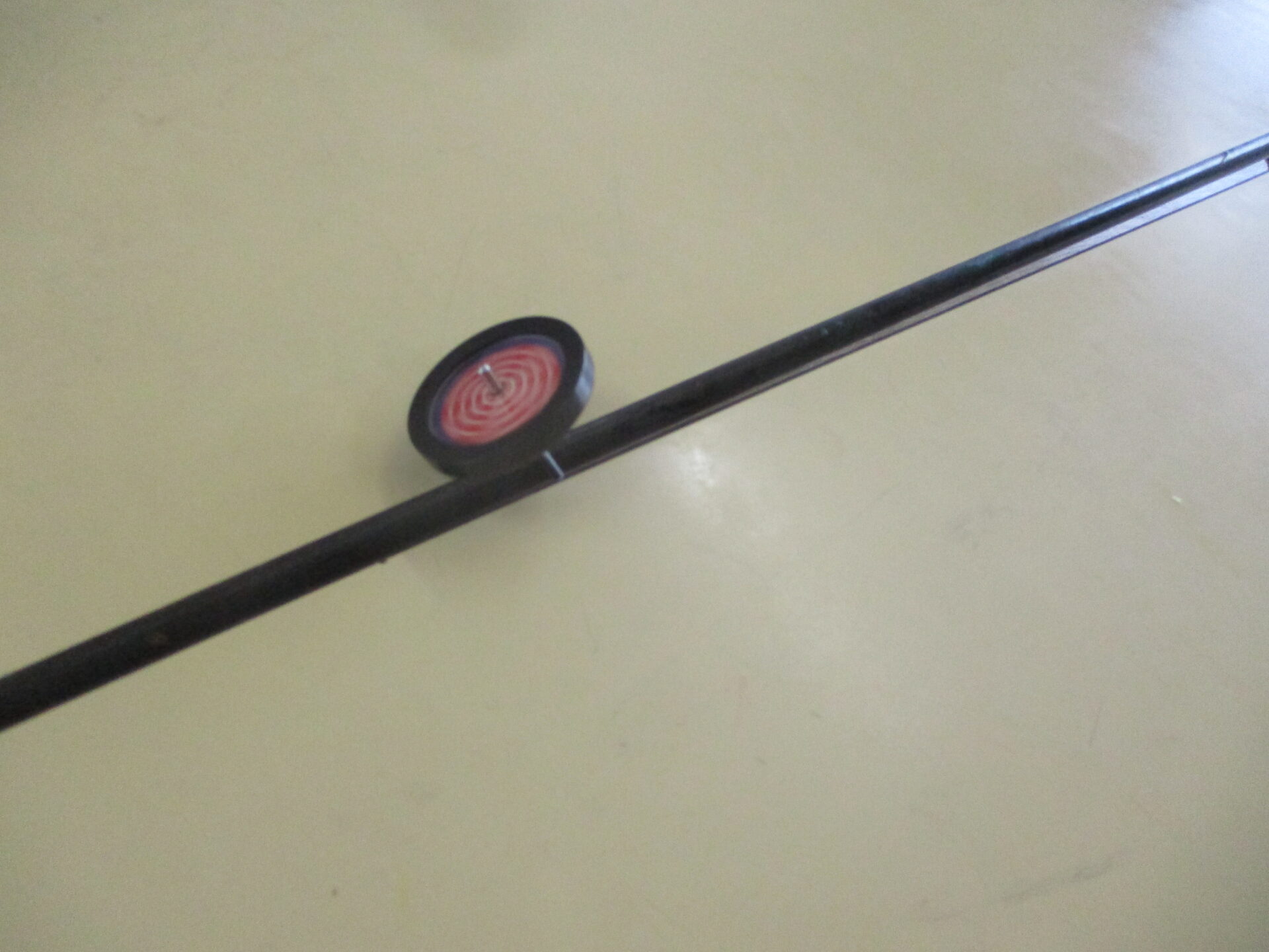こまの回転でひもぐるぐると心棒に巻き付いていき・・・