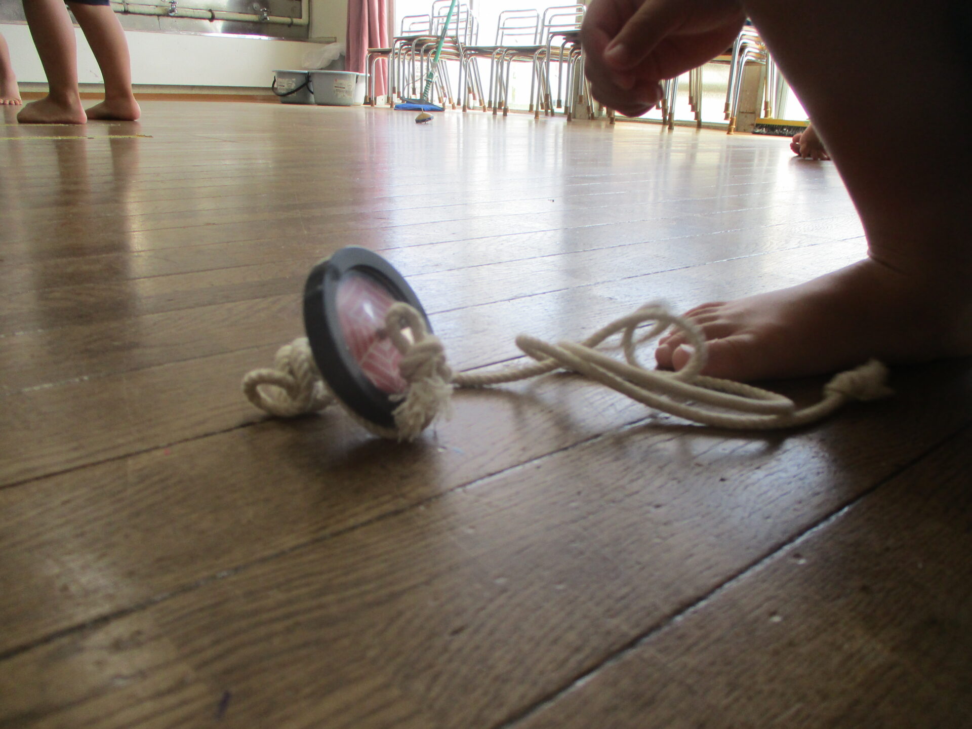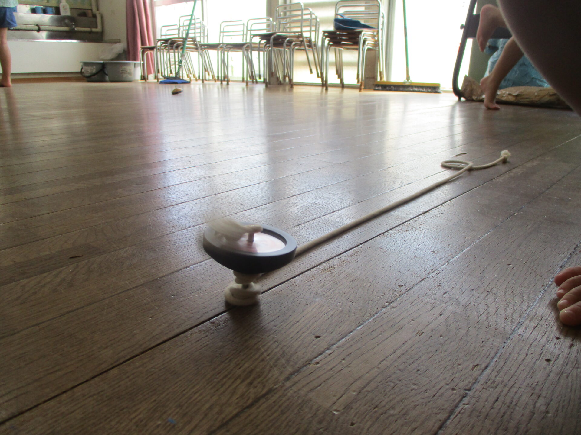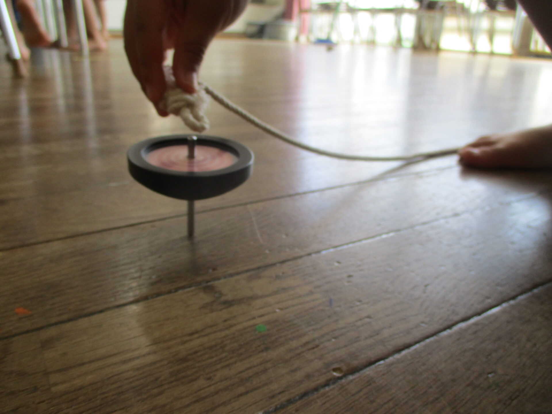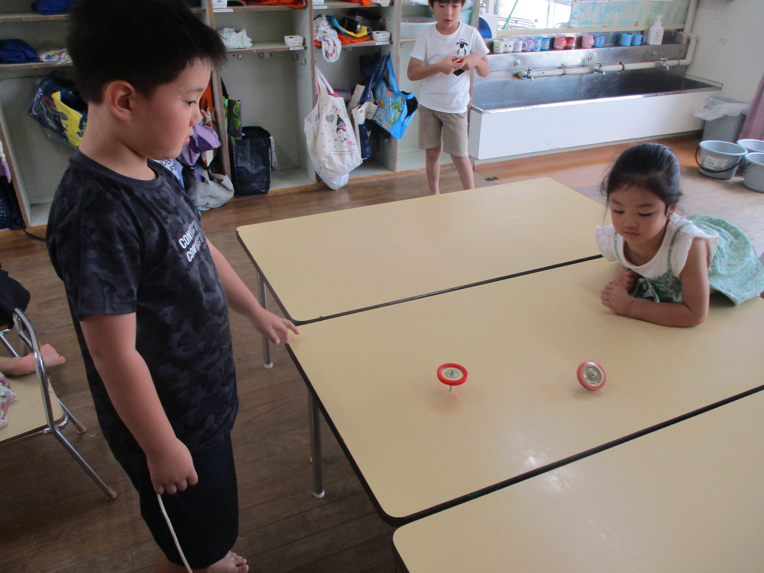 最近、こま遊びが再燃してきていて、友だちと誰が一番長く回せるか競い合ったり、「カツオの一本釣り」等の技に挑戦したりしています。また、以前は回せなかった子も時を経て、友だちからの刺激を受けながら回せるようになったり・・・と、できることが増え、ますます楽しくなっています。