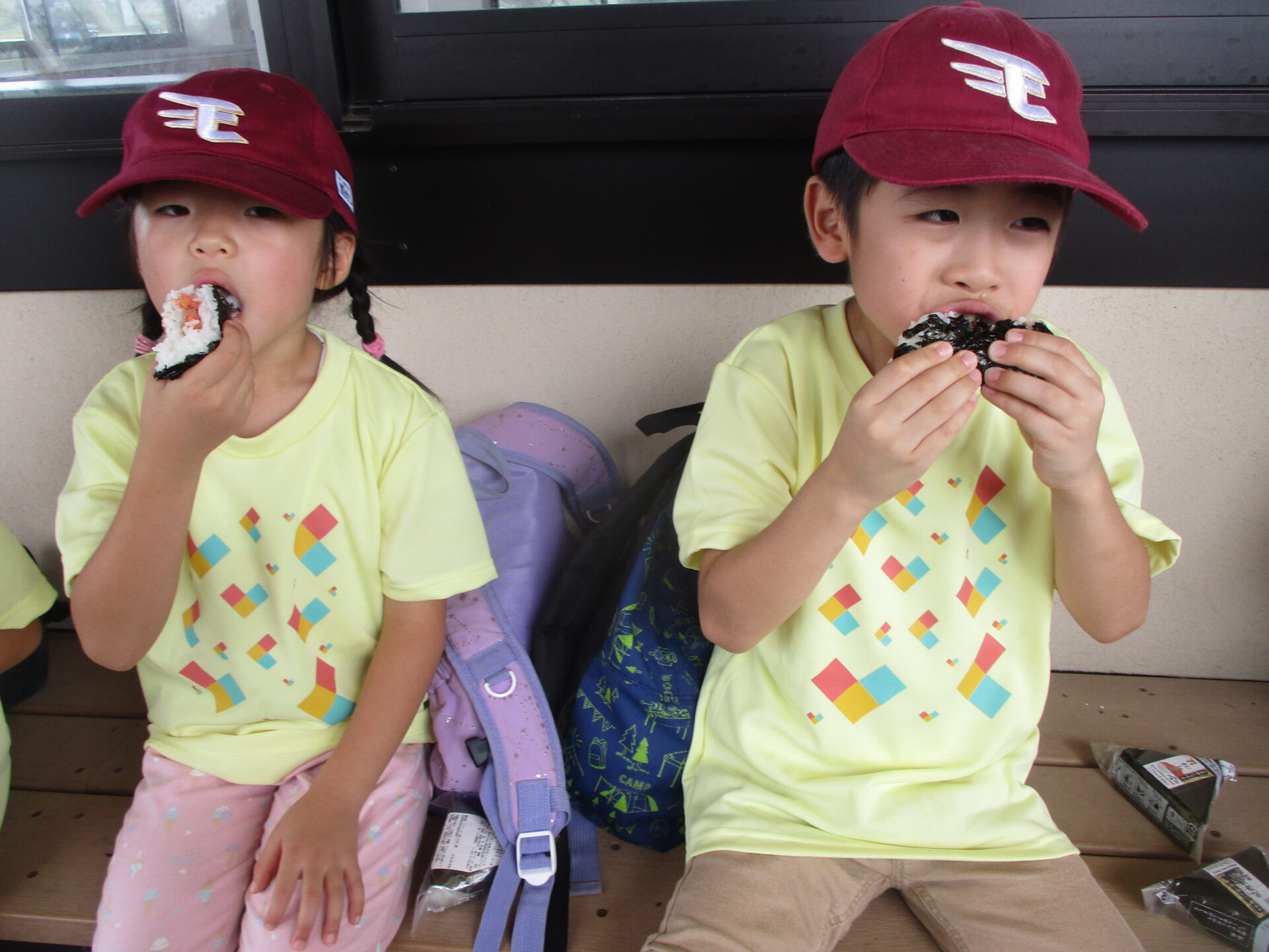「見て!(マークが)一緒だ!」と喜ぶ子どもたち。