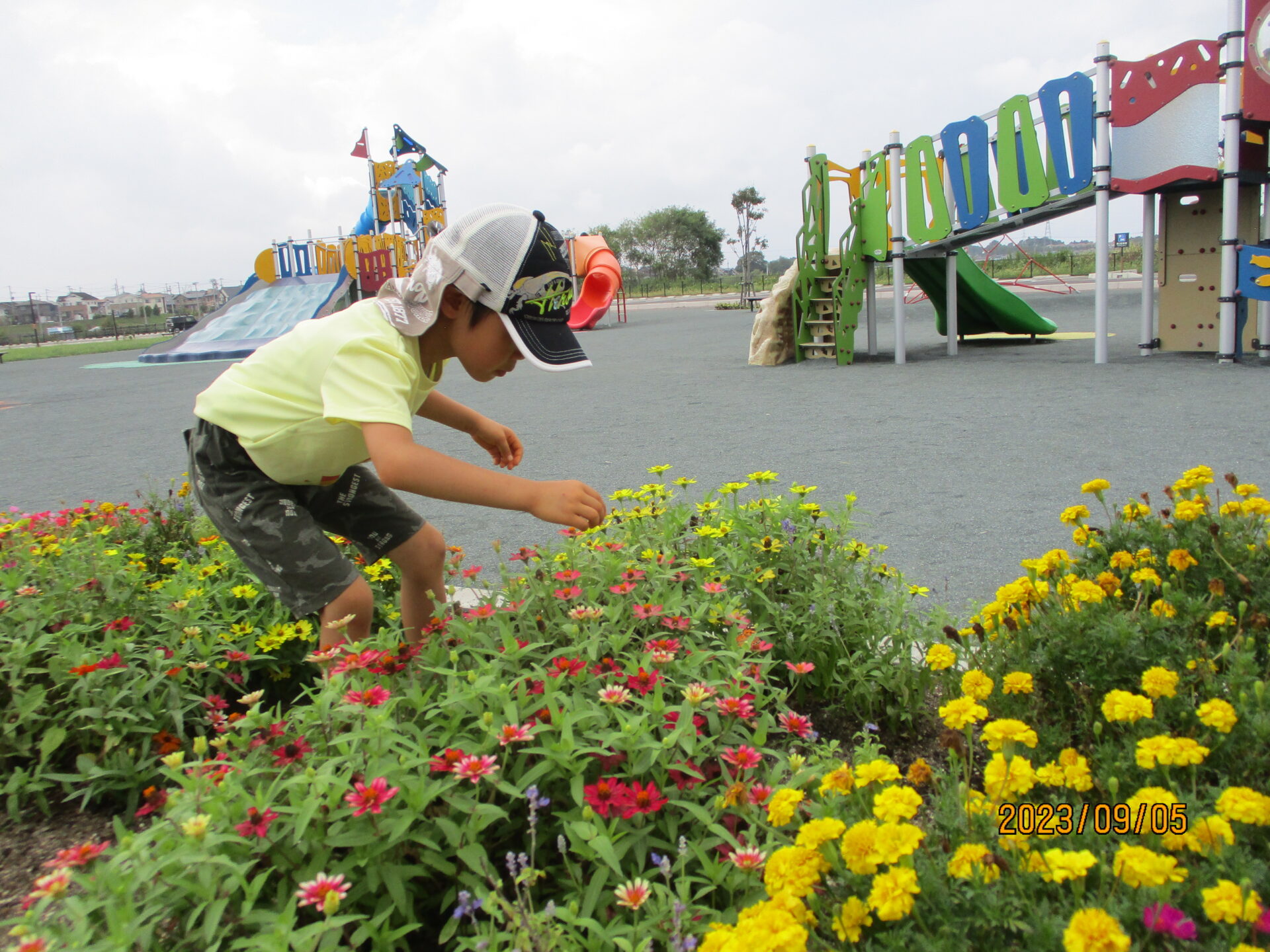 昼食後は、菖蒲田浜海岸の向かいにある長須賀ひろばで遊び…(大好きな虫捕り、かかせません!)