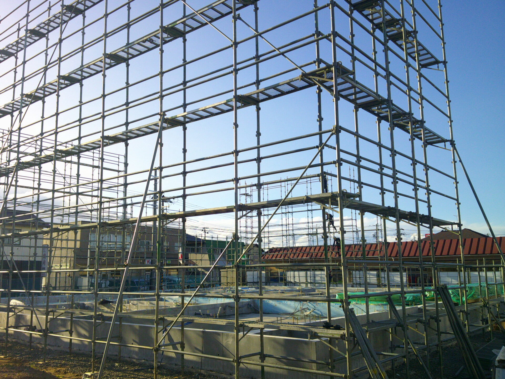 軽快な音に誘われ、0歳児の子どもたちもテラスから工事の様子を見ることを楽しんでいます。