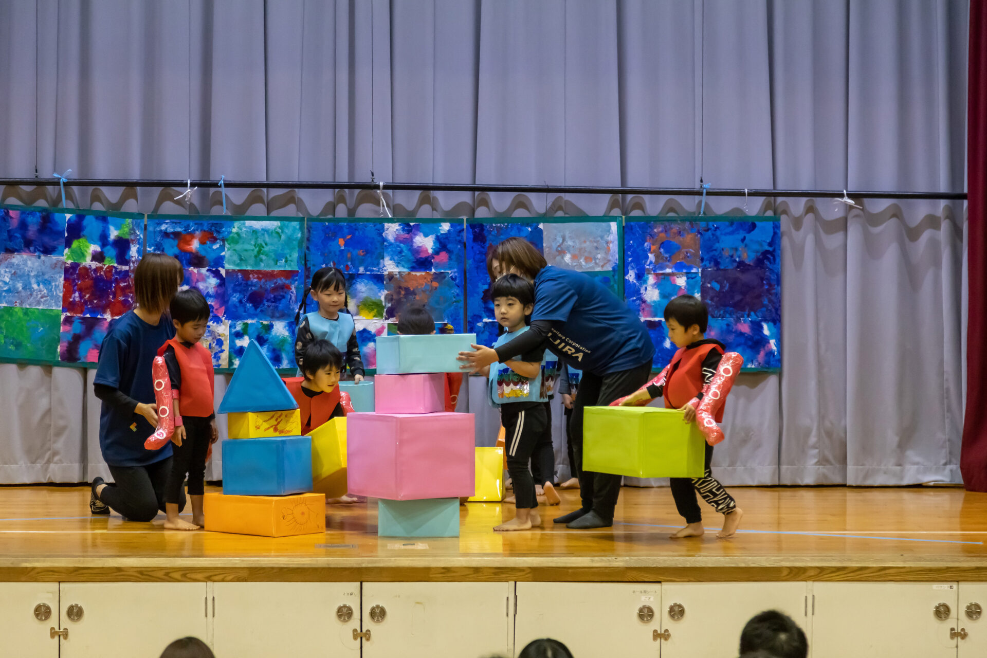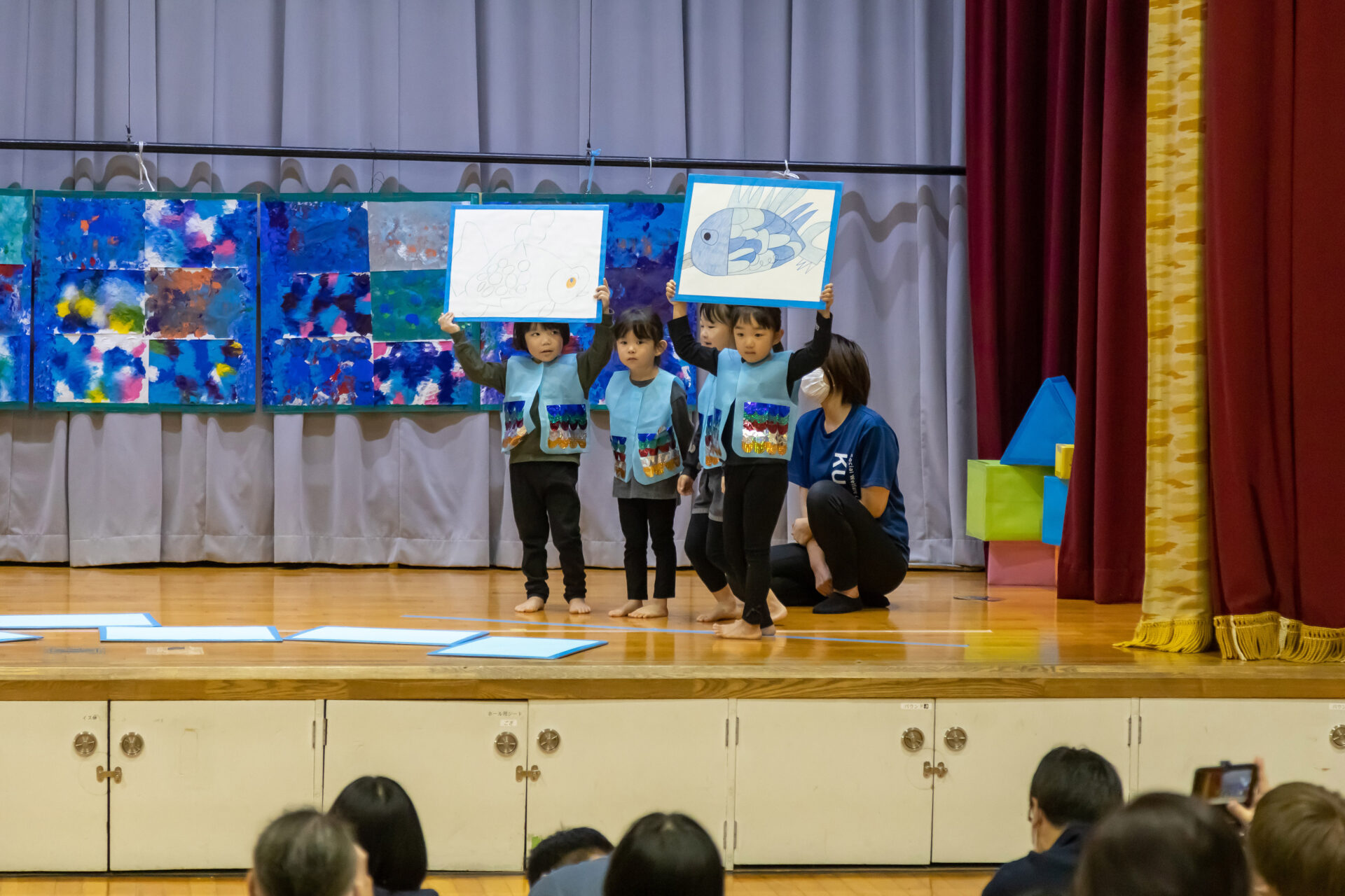 劇遊び「にじいろのさかな」では、大好きな絵本の世界をみんなで表現しました。