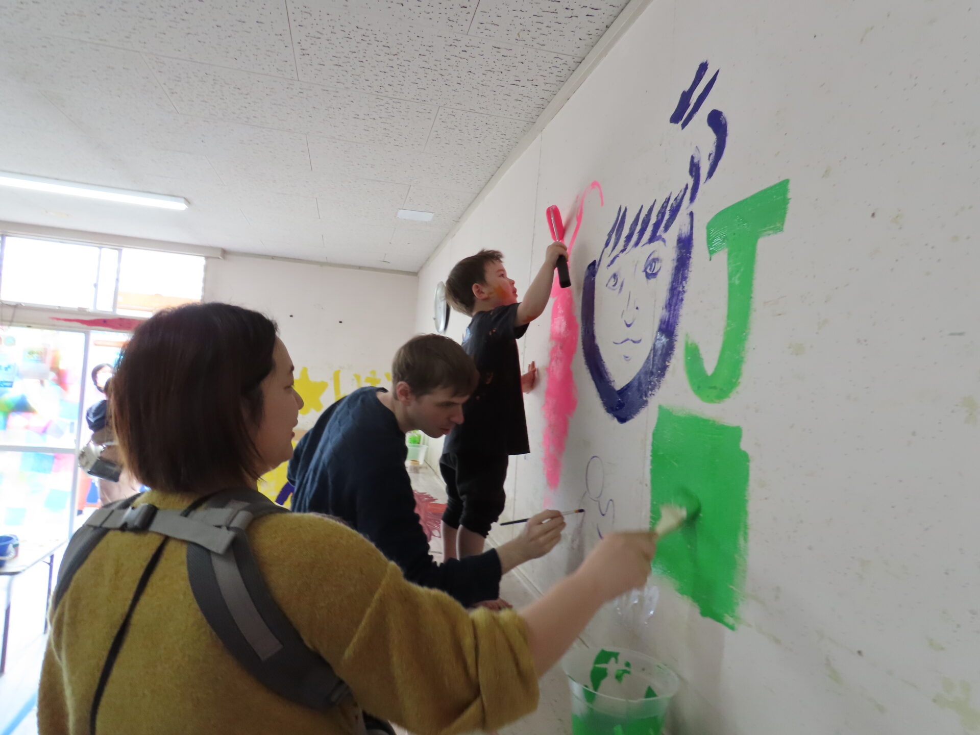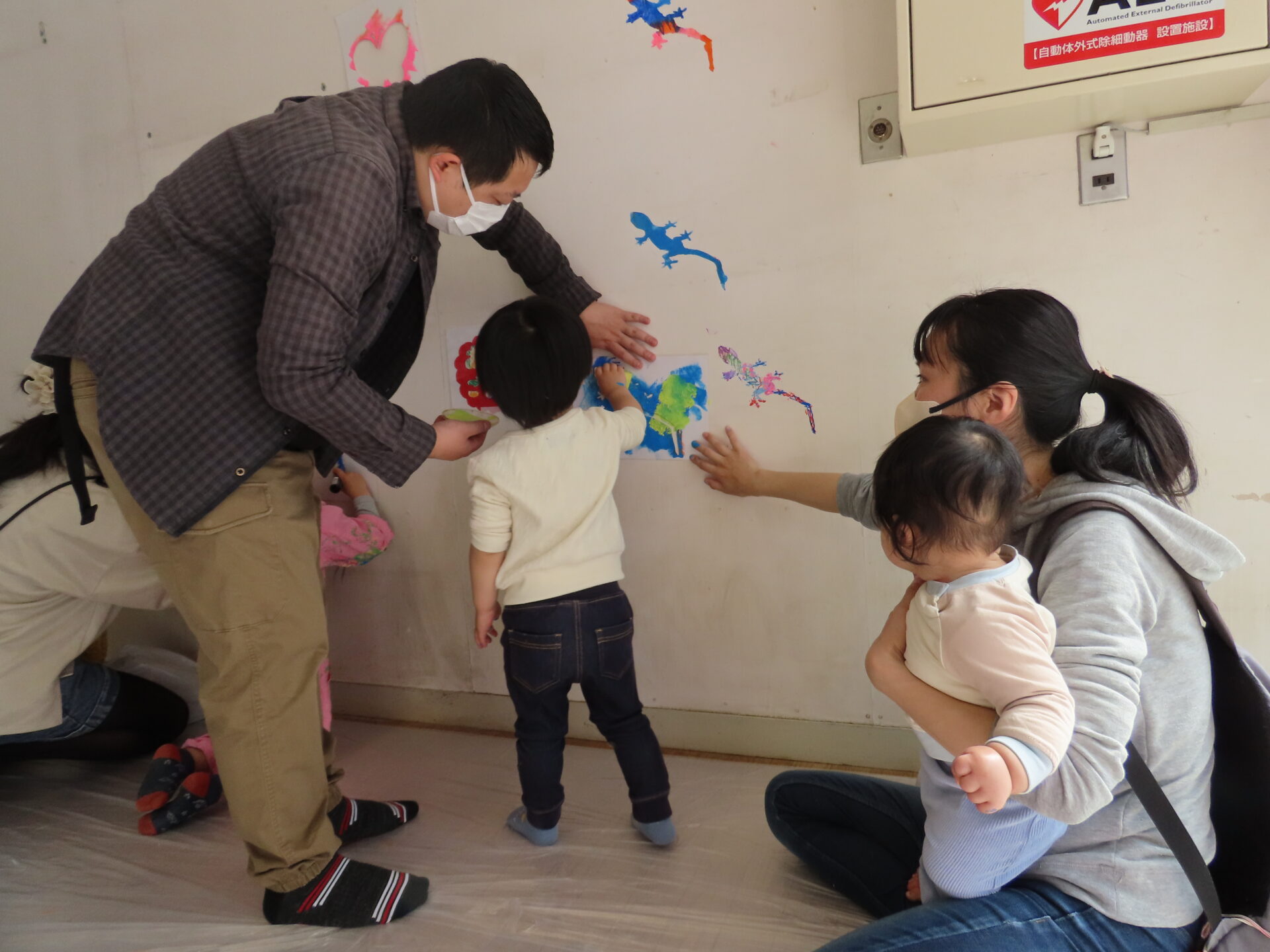 お父さん、お母さん方がこどもたちが楽しんでいる姿を見守る様子も微笑ましい光景でしたが、だんだんと保護者の方も一緒に色遊びを楽しむ様子も嬉しいひとときでした。