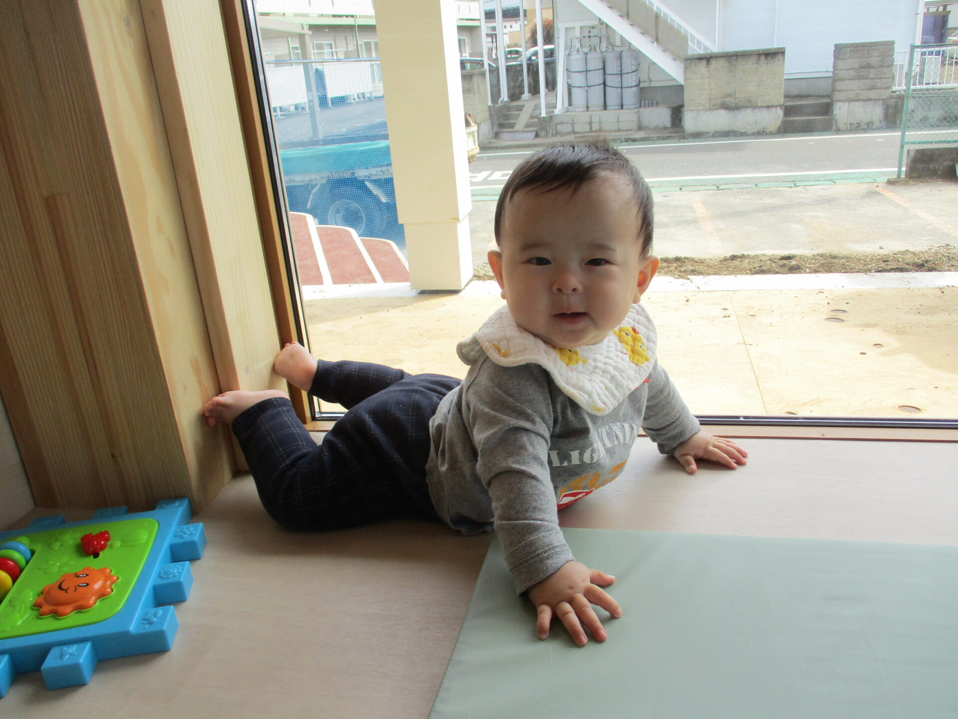うみ組(0歳児)のこどもたちが入園して2週間が経ちました。
