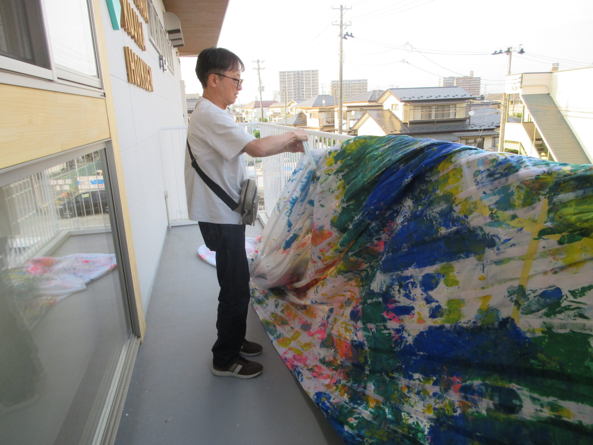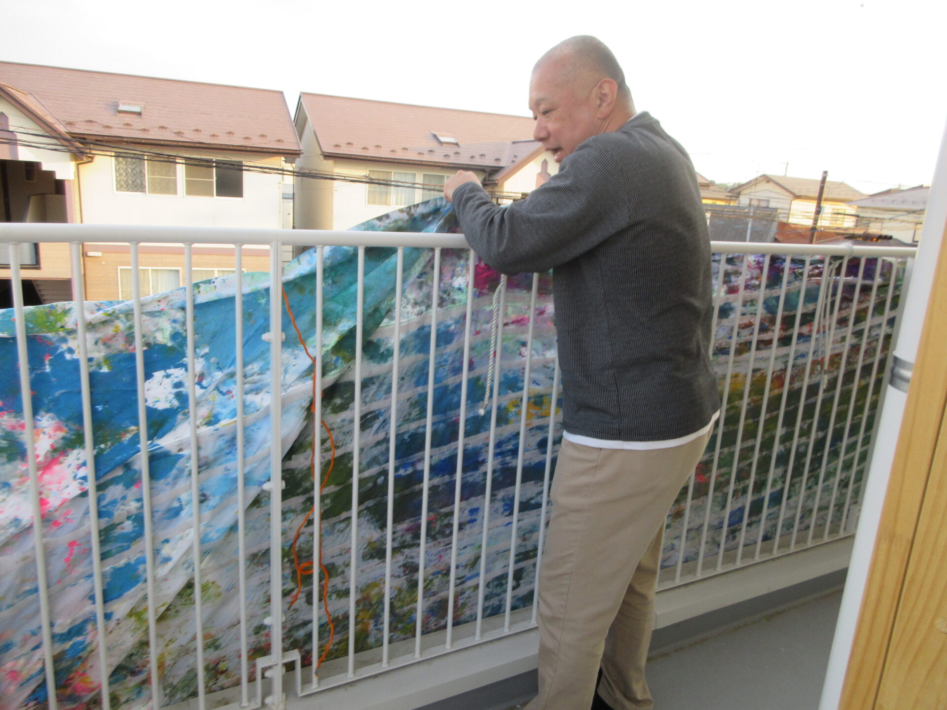4/13から手倉田園舎を彩っていた「くじらのぼり」を外しているのは、法人くじらの男会職員です。