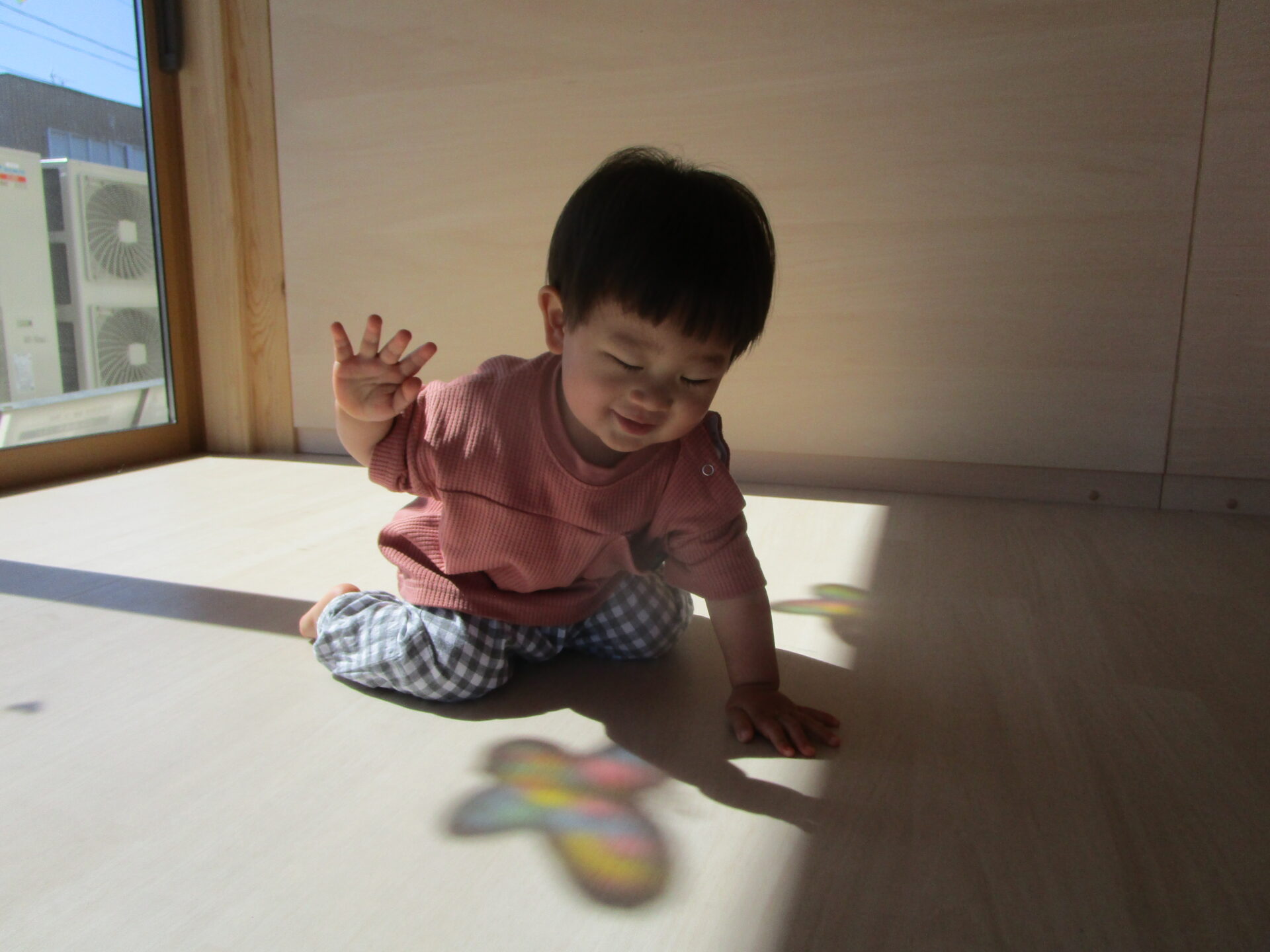 キラキラにタッチしたり、見つけたことを嬉しそうに教えたりと、気づいたことを思い思いに楽しみました。