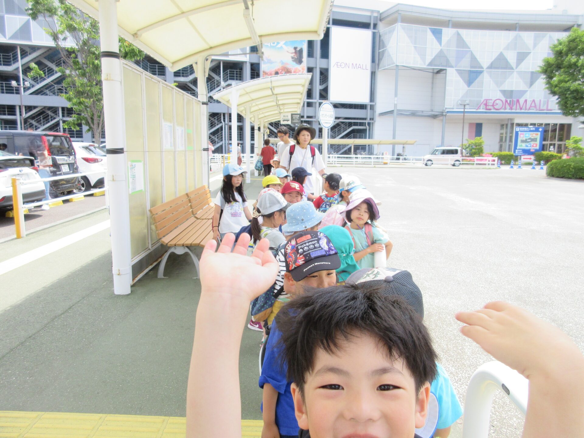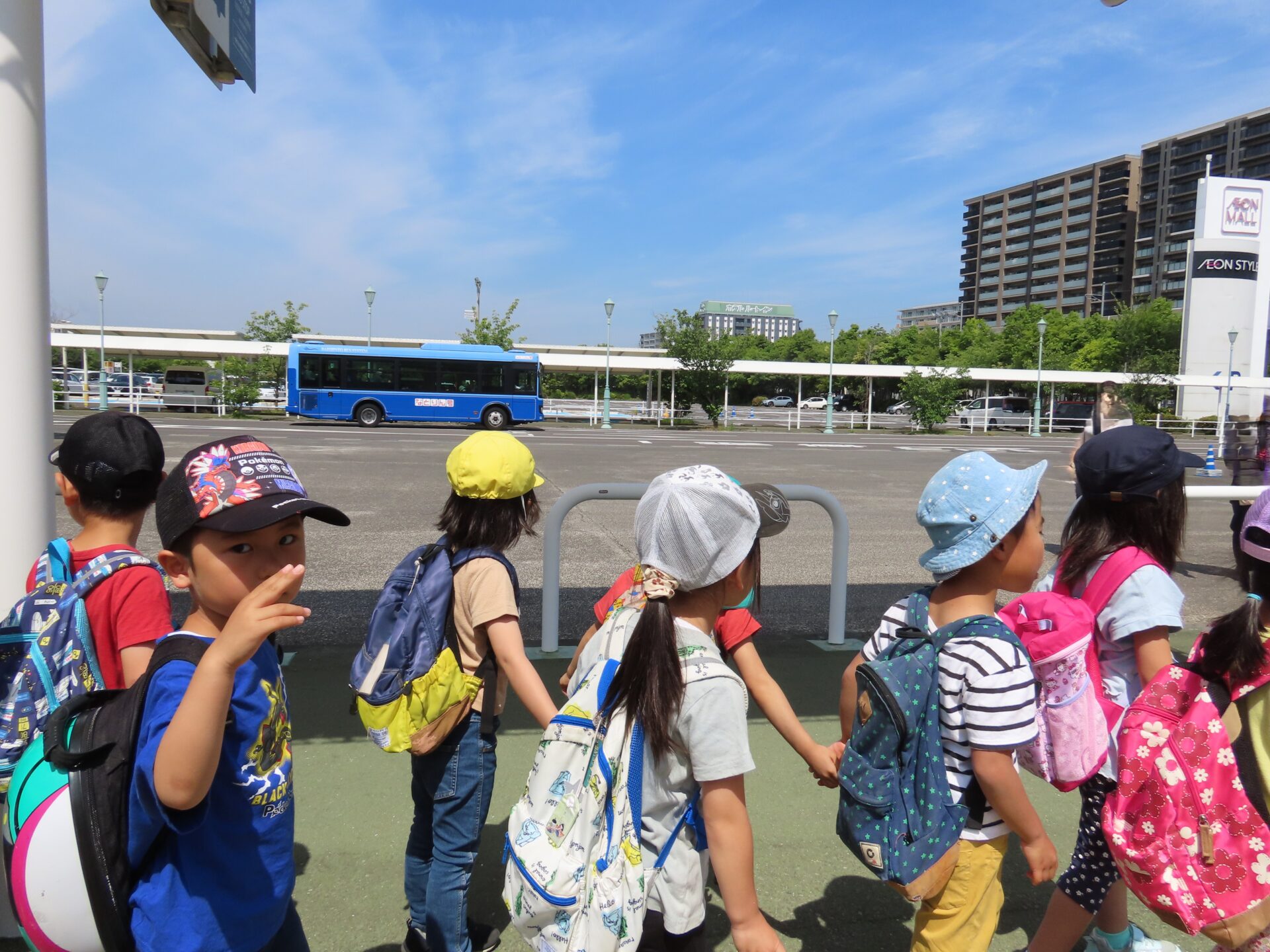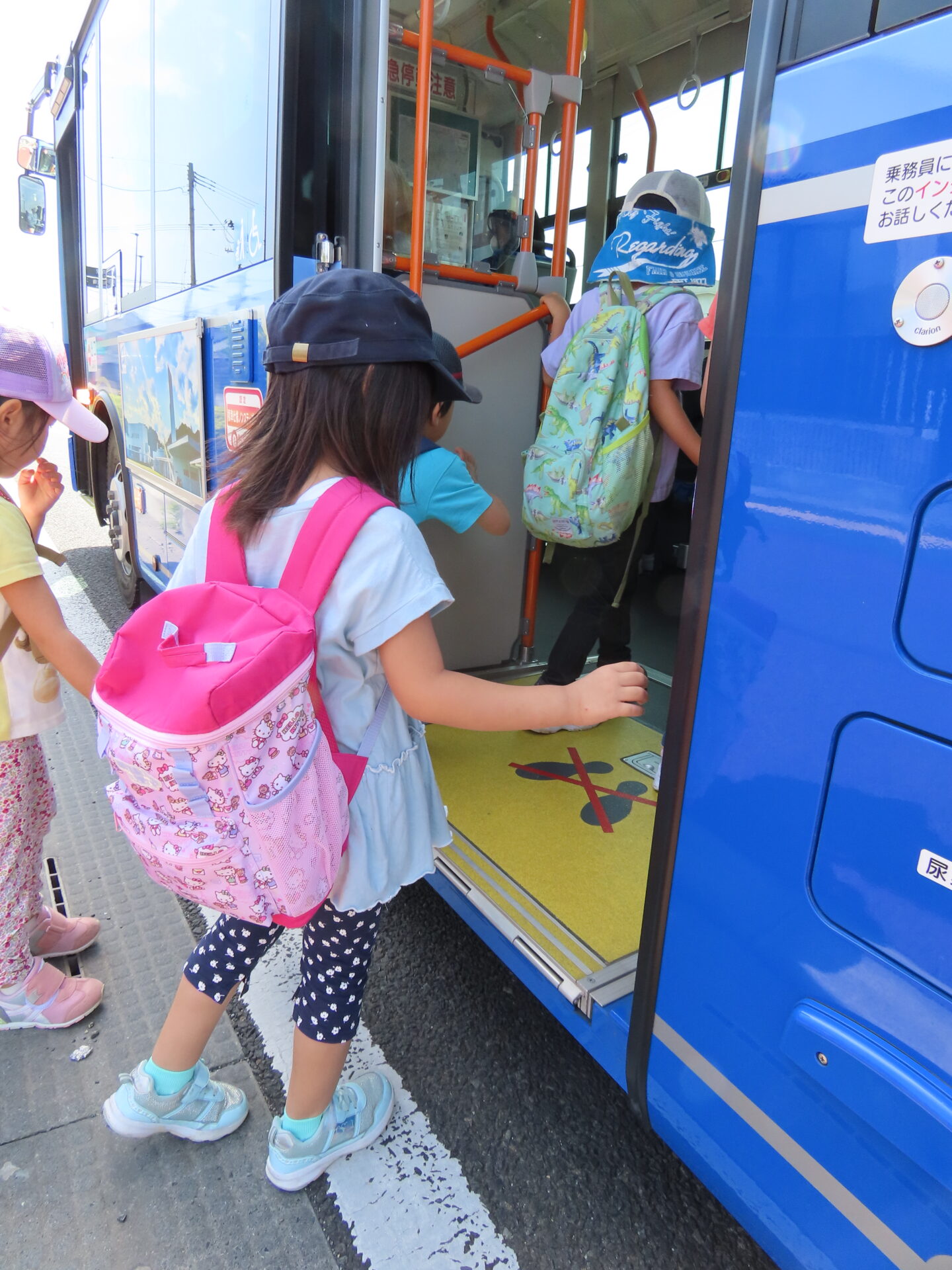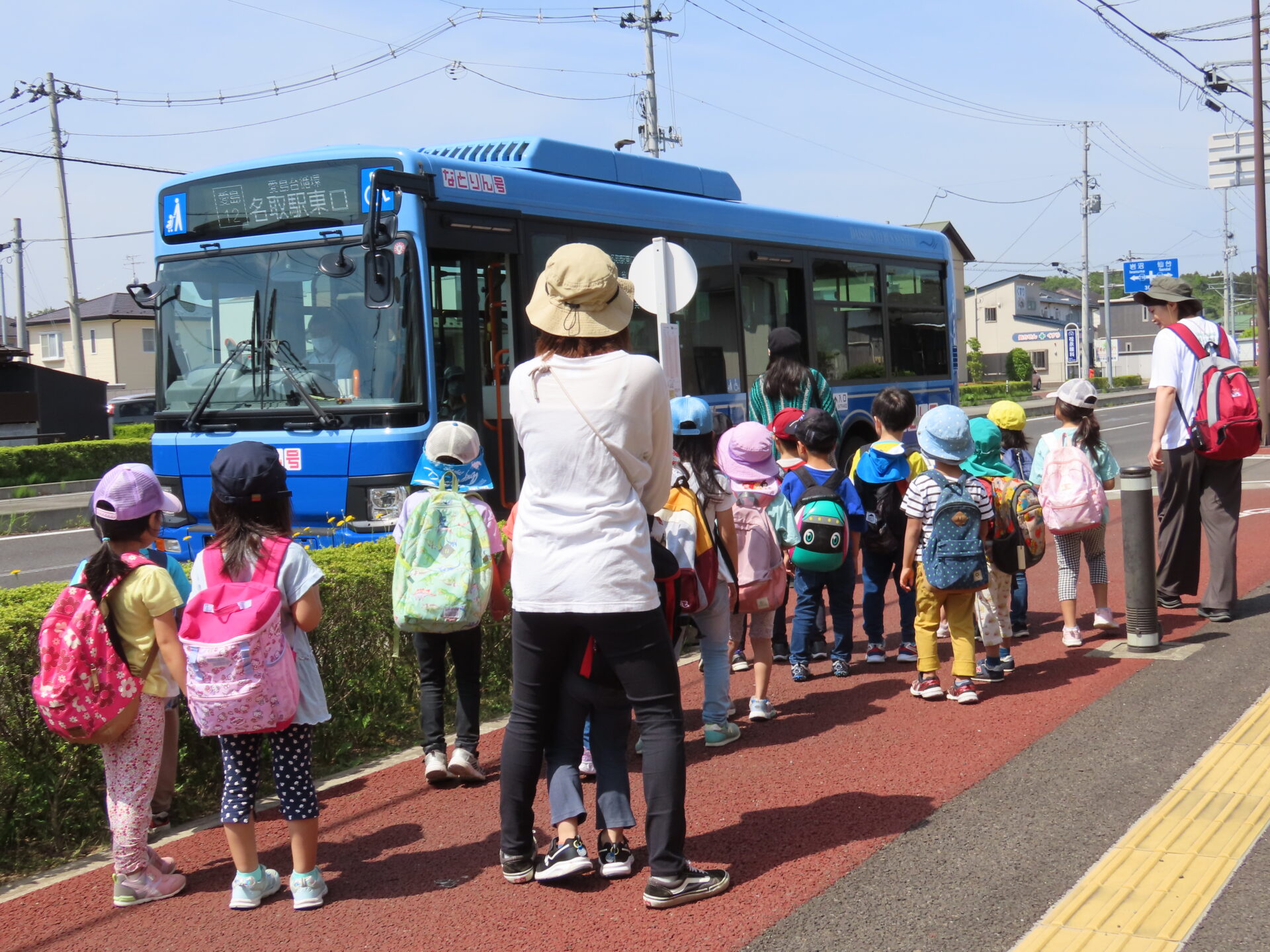 いつも園の前を走っている「なとりん号」を見ていたこどもたちは、「乗ってみたい」という気持ちが膨らんでいて、その願いを、今日実現することができたのです。