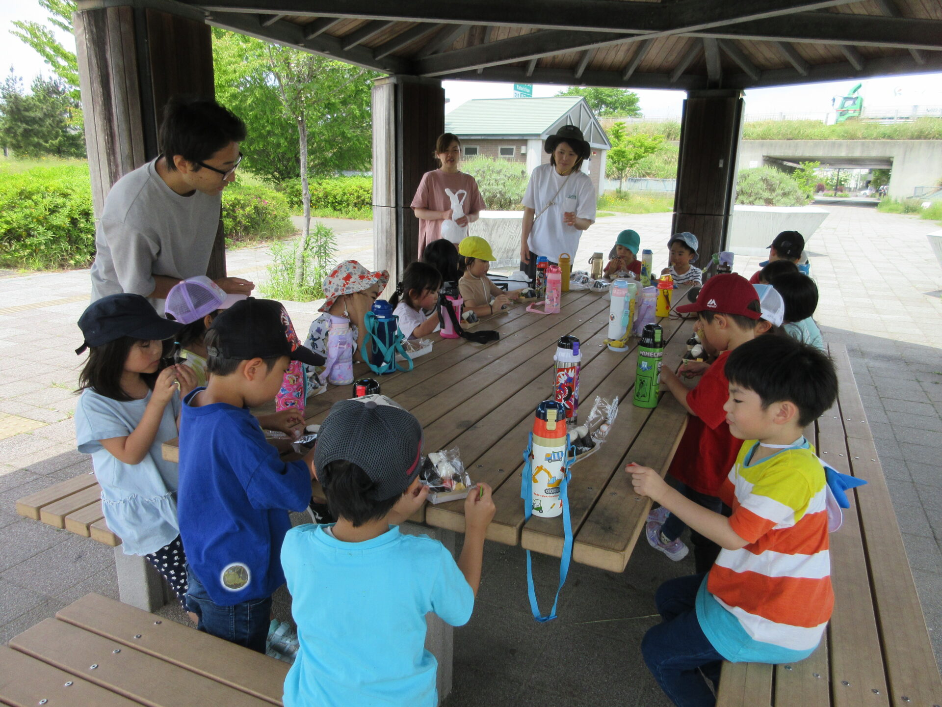 たくさん遊んだ後は、お待ちかねの昼食タイム!お外で食べるお弁当は、格別の美味しさです。