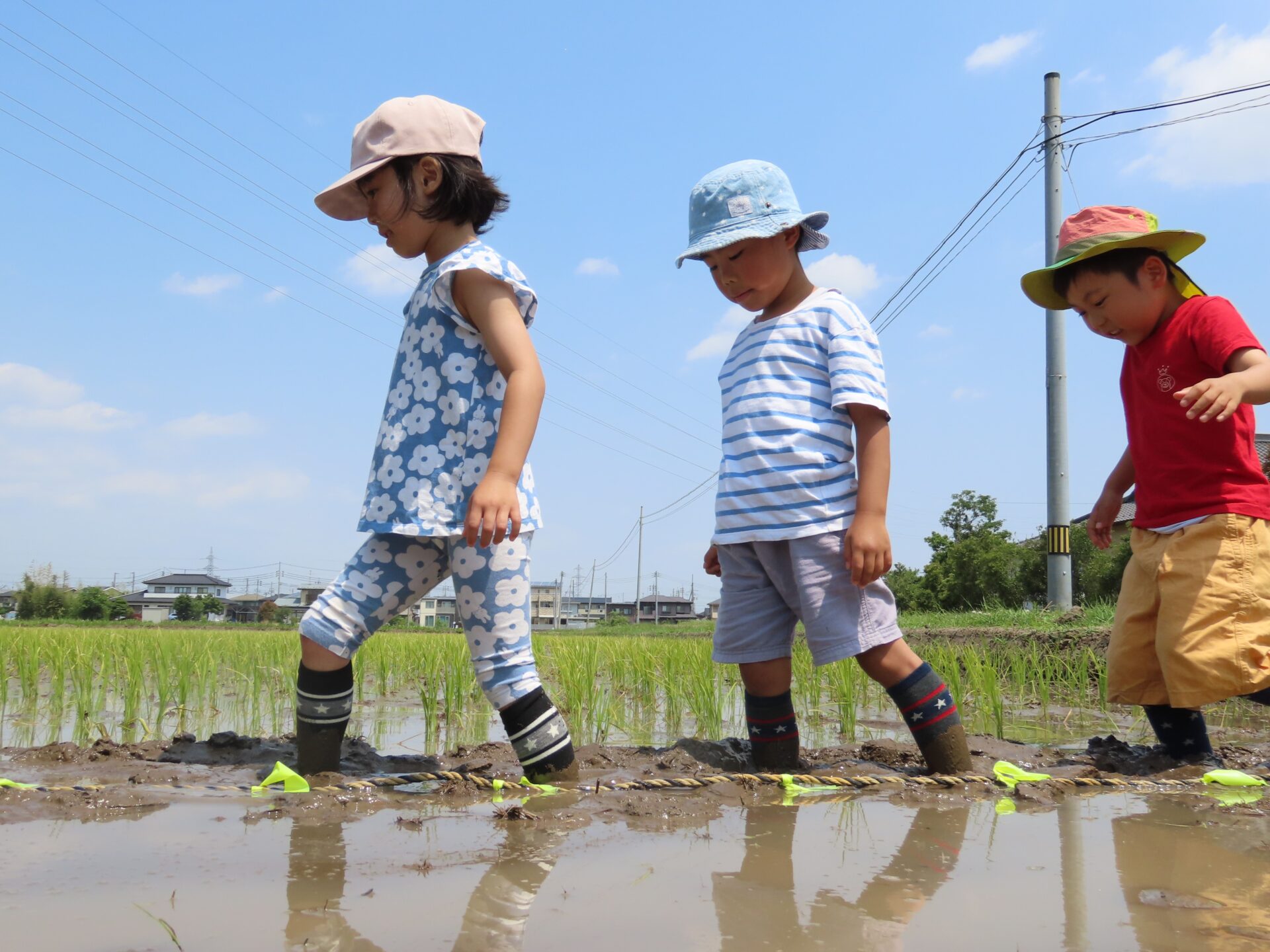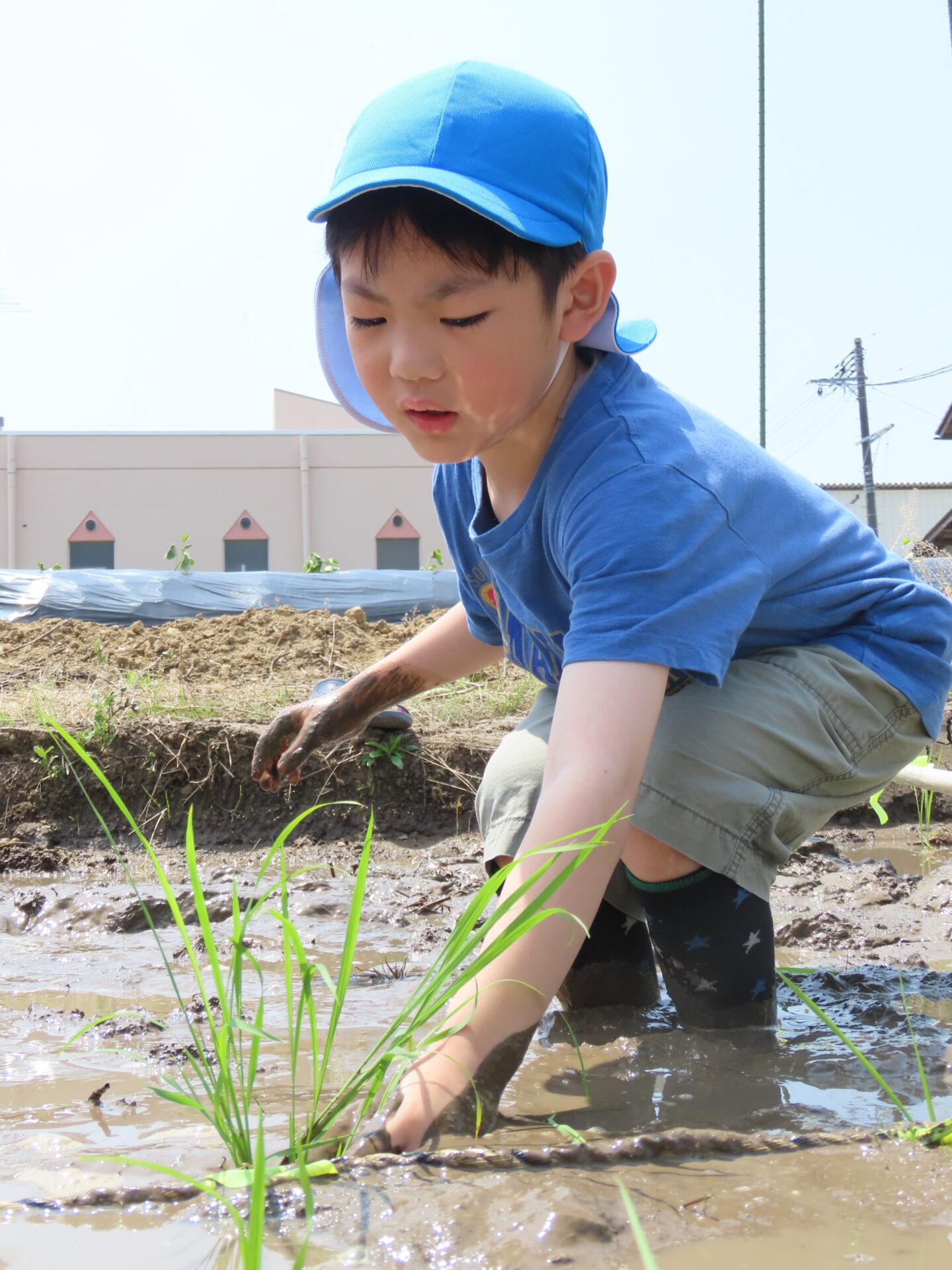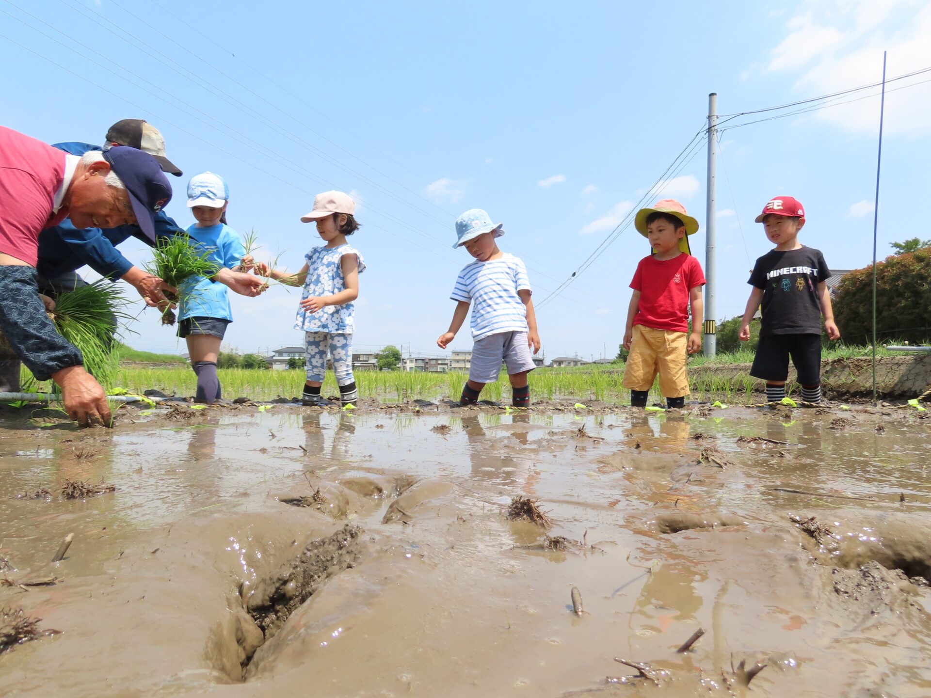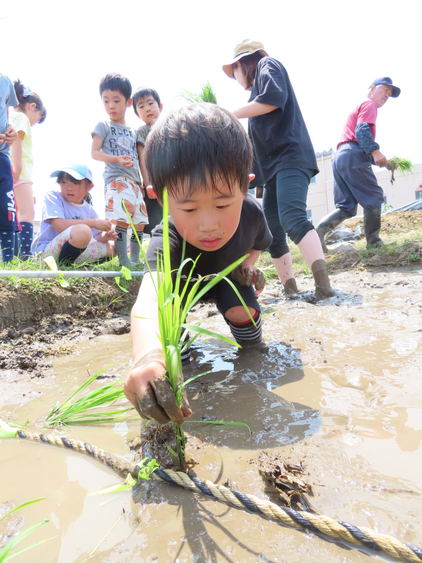 毎年、5歳児のこどもたちが地域の方にご協力いただき、米作りに取り組んでいます。