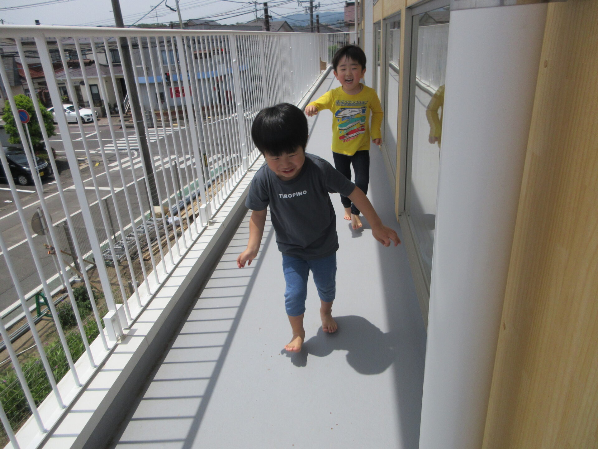 2階のベランダからは園周辺の建物や景色を眺めることができ、こどもたちのお気に入りの場所になっています。