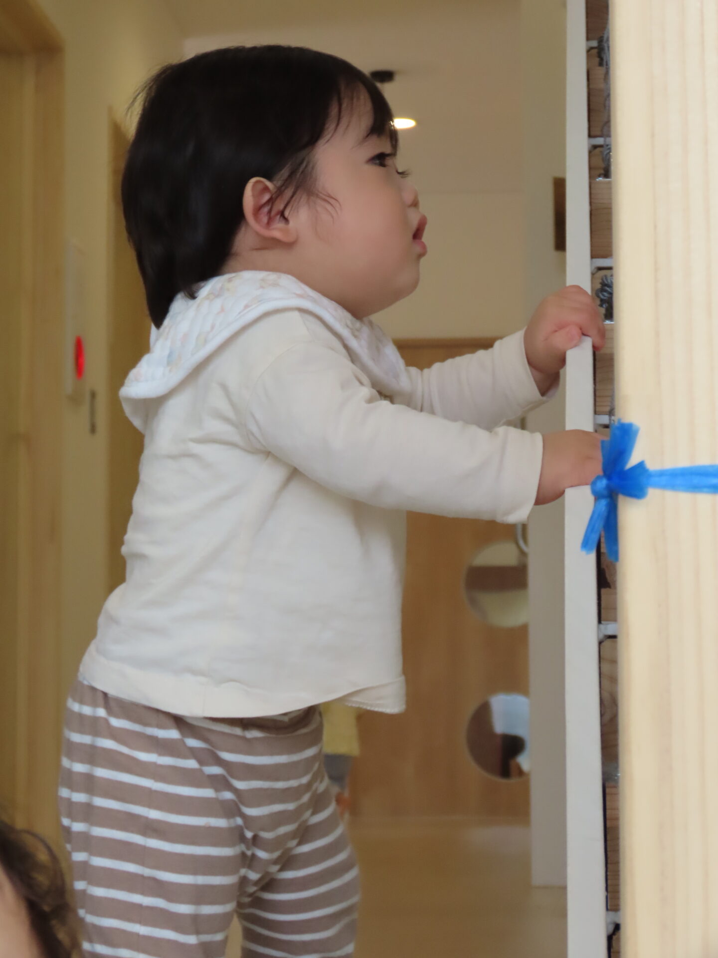 廊下から、だいち組(0・1歳児)を覗いたり・・・と、思い思いに廊下探検を楽しんでいます。