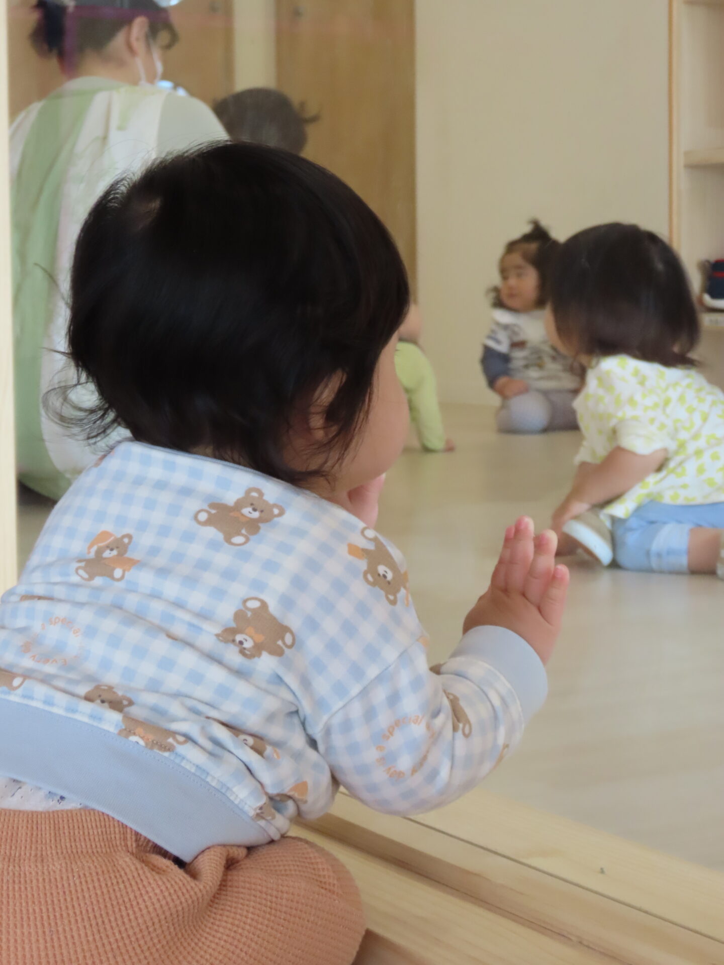 はいはいで廊下に出てきた0歳児のこどもたちは興味津々で探索を始めました。