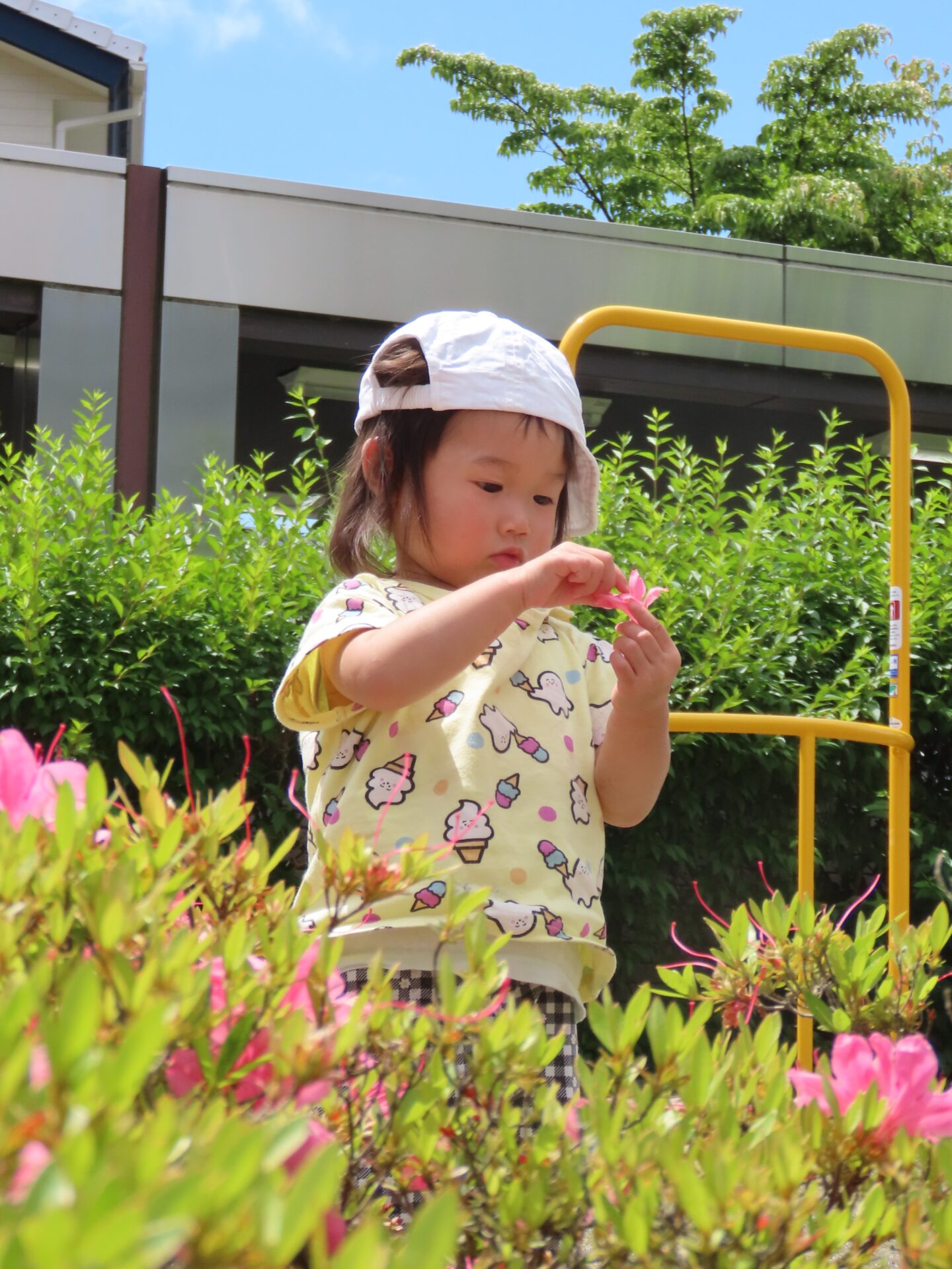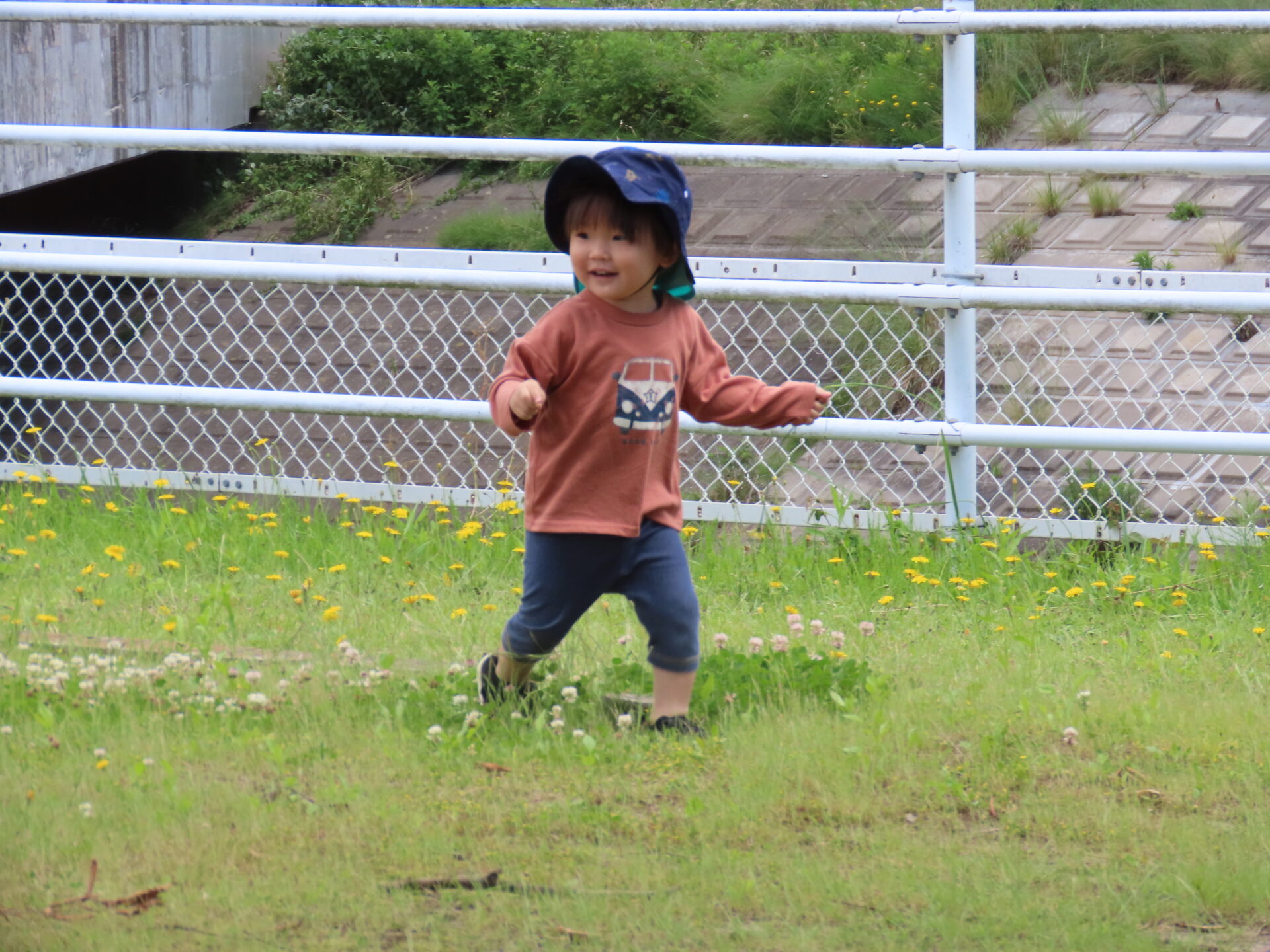 お花を見つけたりと、のびのびと探索することを楽しんでいます。