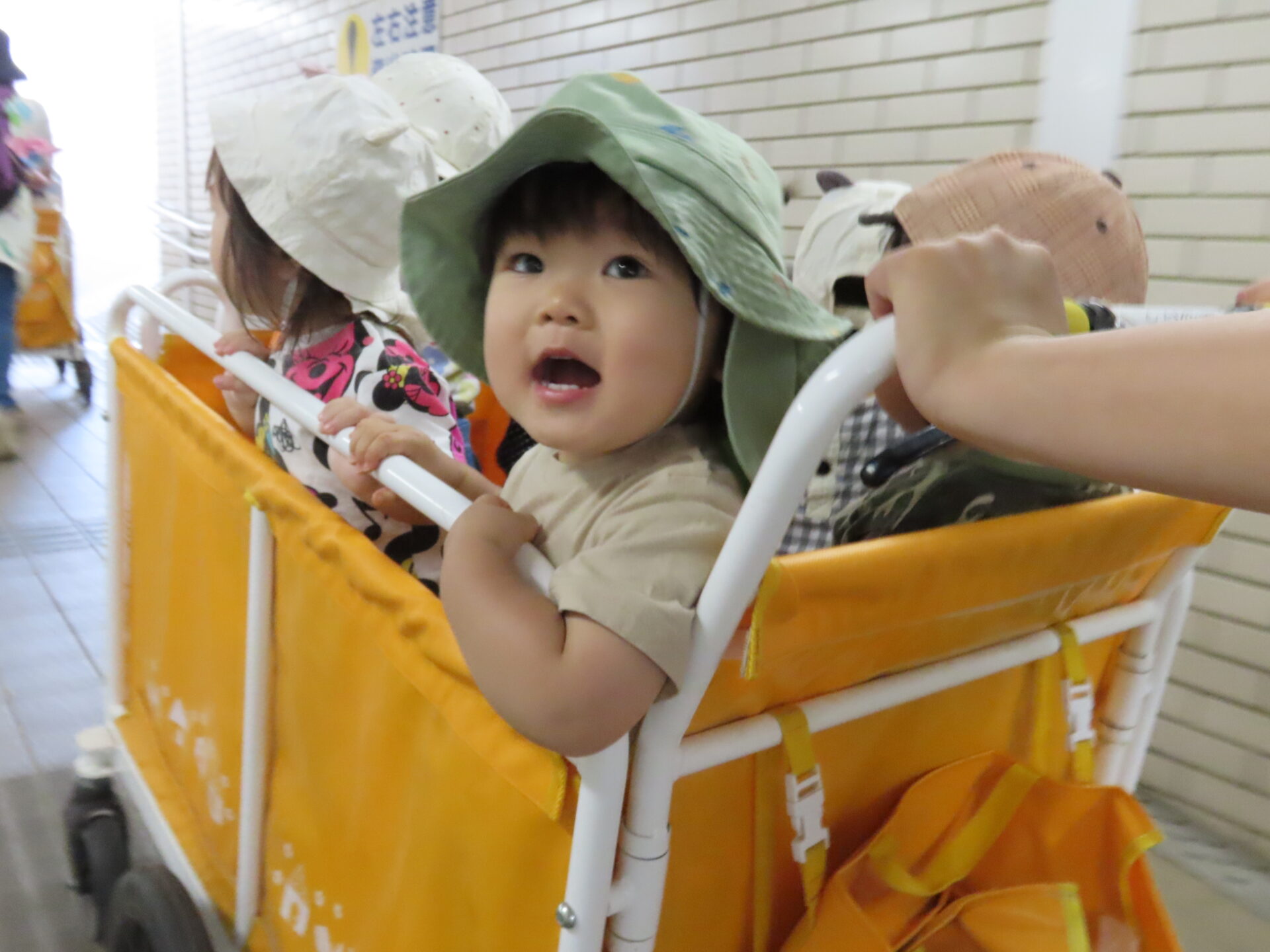 避難車に乗って、だいち組(0・1歳児)が向かった先は「飯野坂北公園」です。