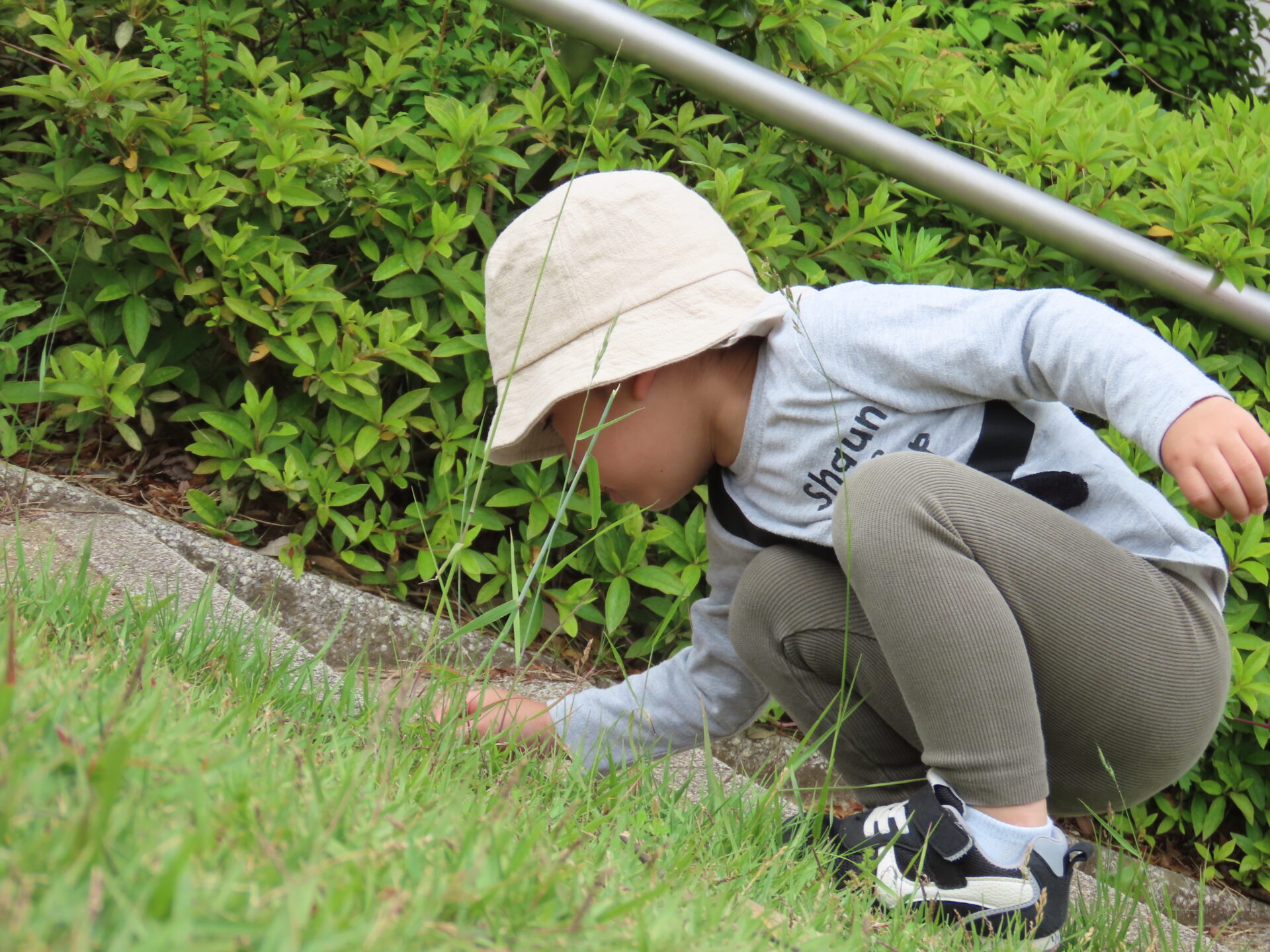 築山の階段にだんごむしを発見!