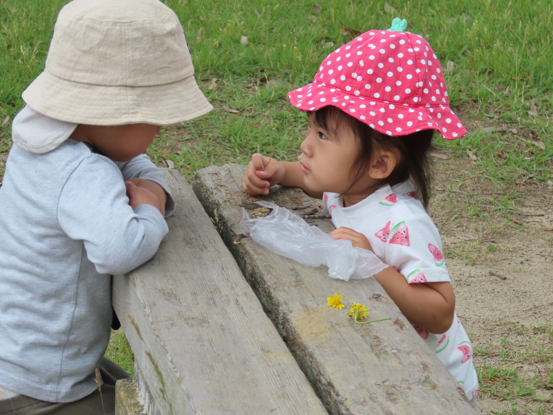 見つけた草花を使ってお店屋さんごっこも始まりました。