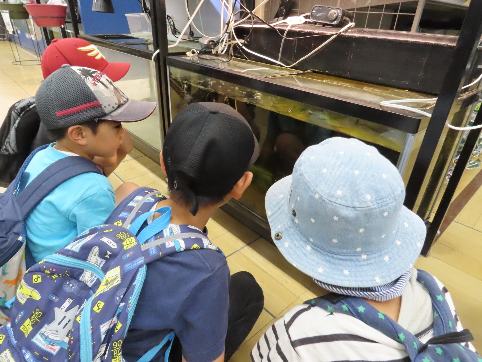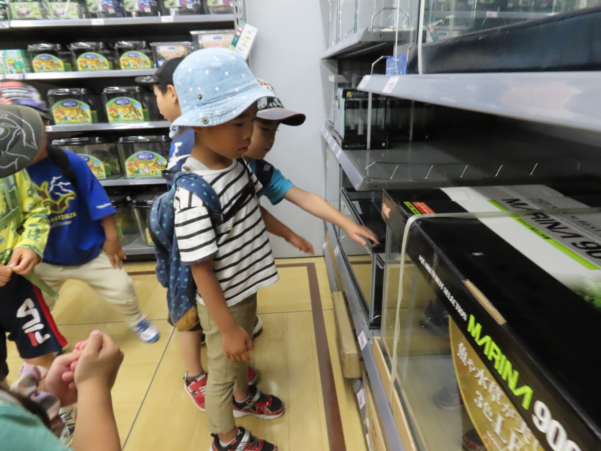 そして、水槽コーナーに到着!様々な種類の水槽があり、「どれがいいのかな?」と悩むこどもたち。
