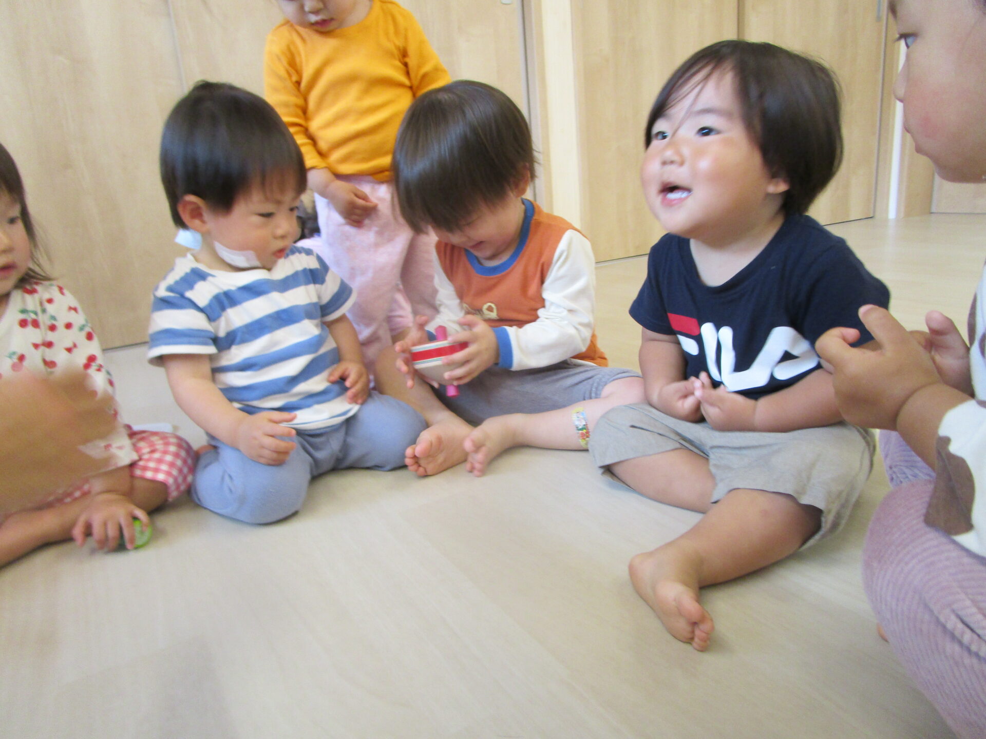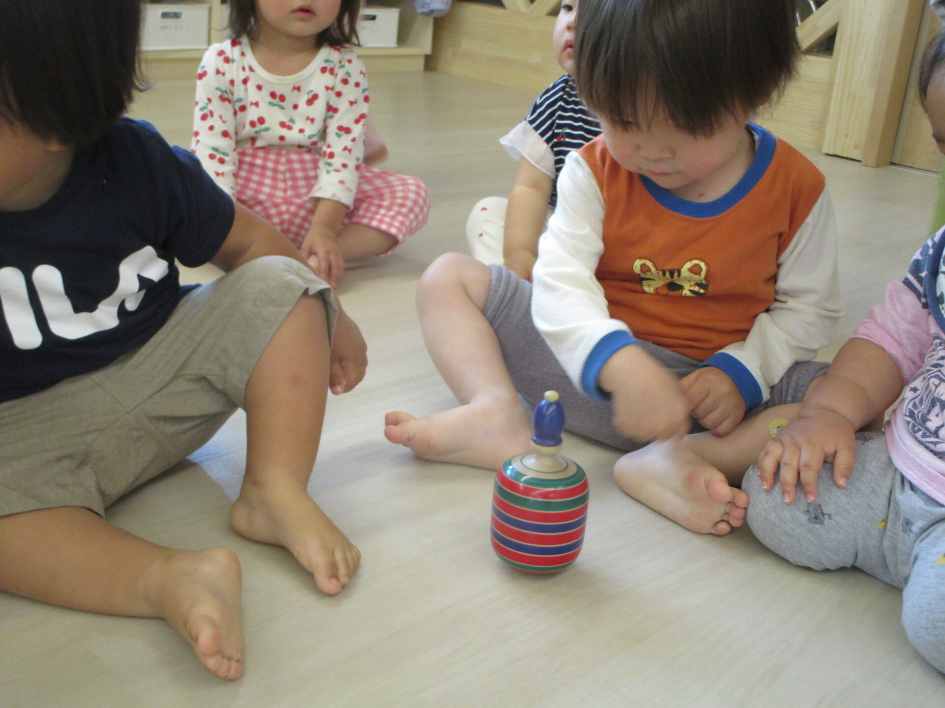 副主任保育士がコレクションしている「コマ」を、だいち組(0・1歳児)のこどもたちと見せてもらいました。