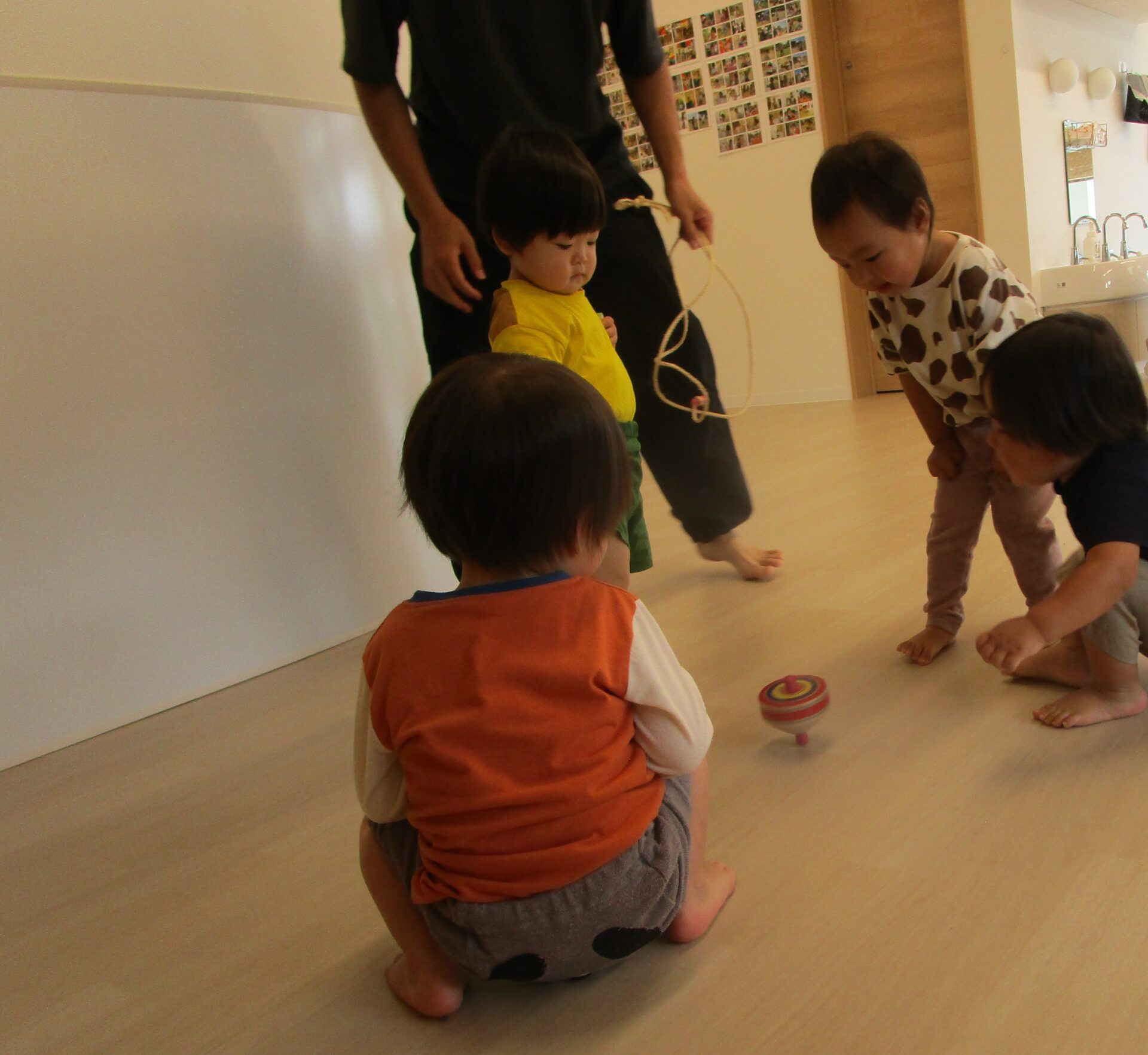 副主任保育士がコレクションしている「コマ」を、だいち組(0・1歳児)のこどもたちと見せてもらいました。