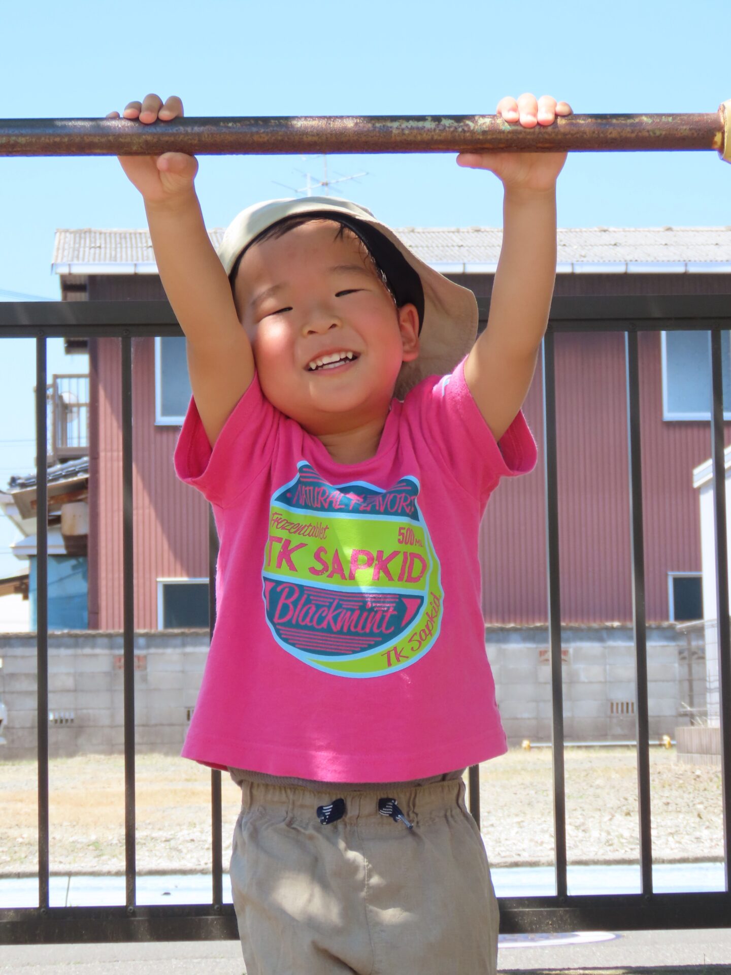 鉄棒にぶら下がって、ゆ~らゆら。楽しいね!